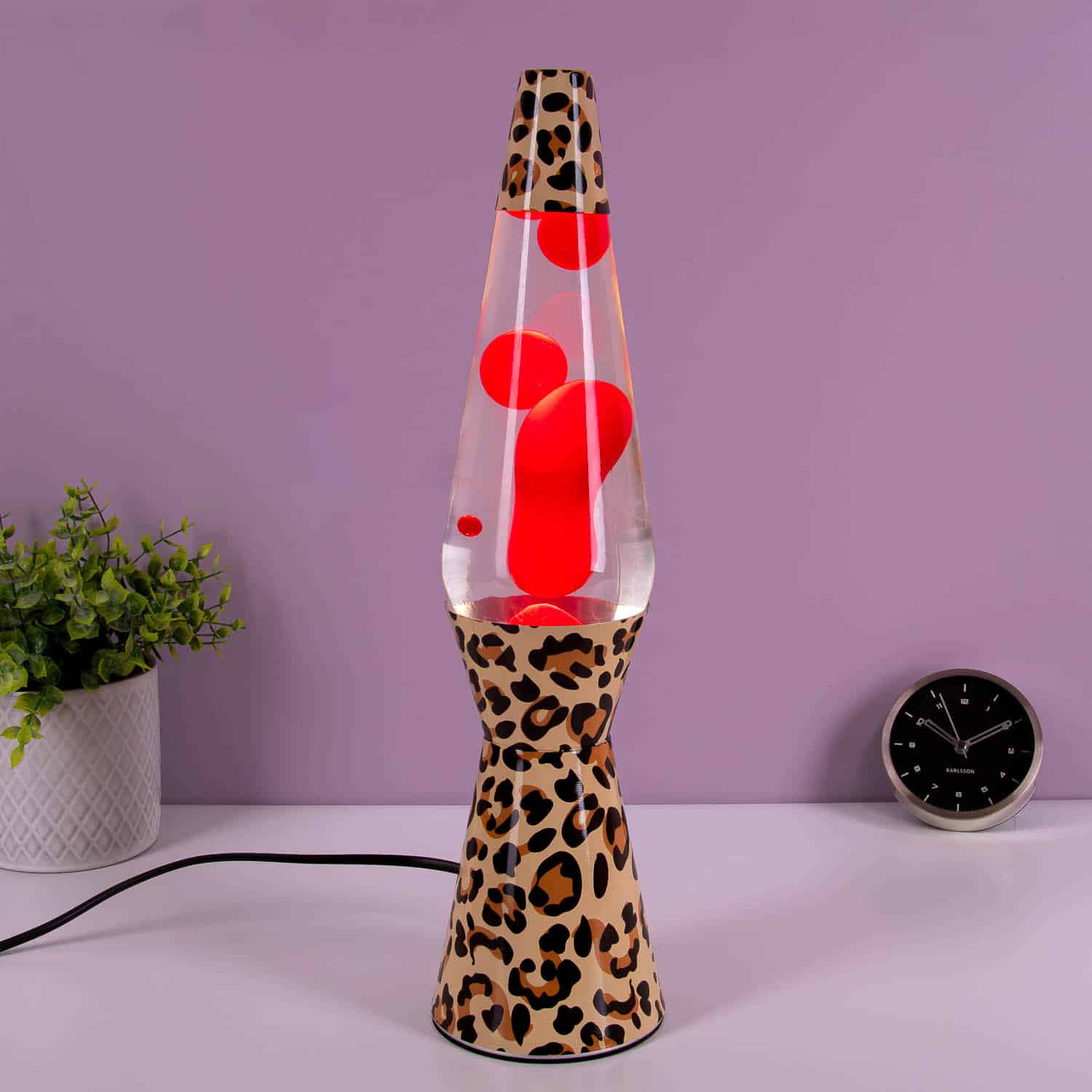 - Trendige Lavalampe mit Leopardenmuster und roter Lava