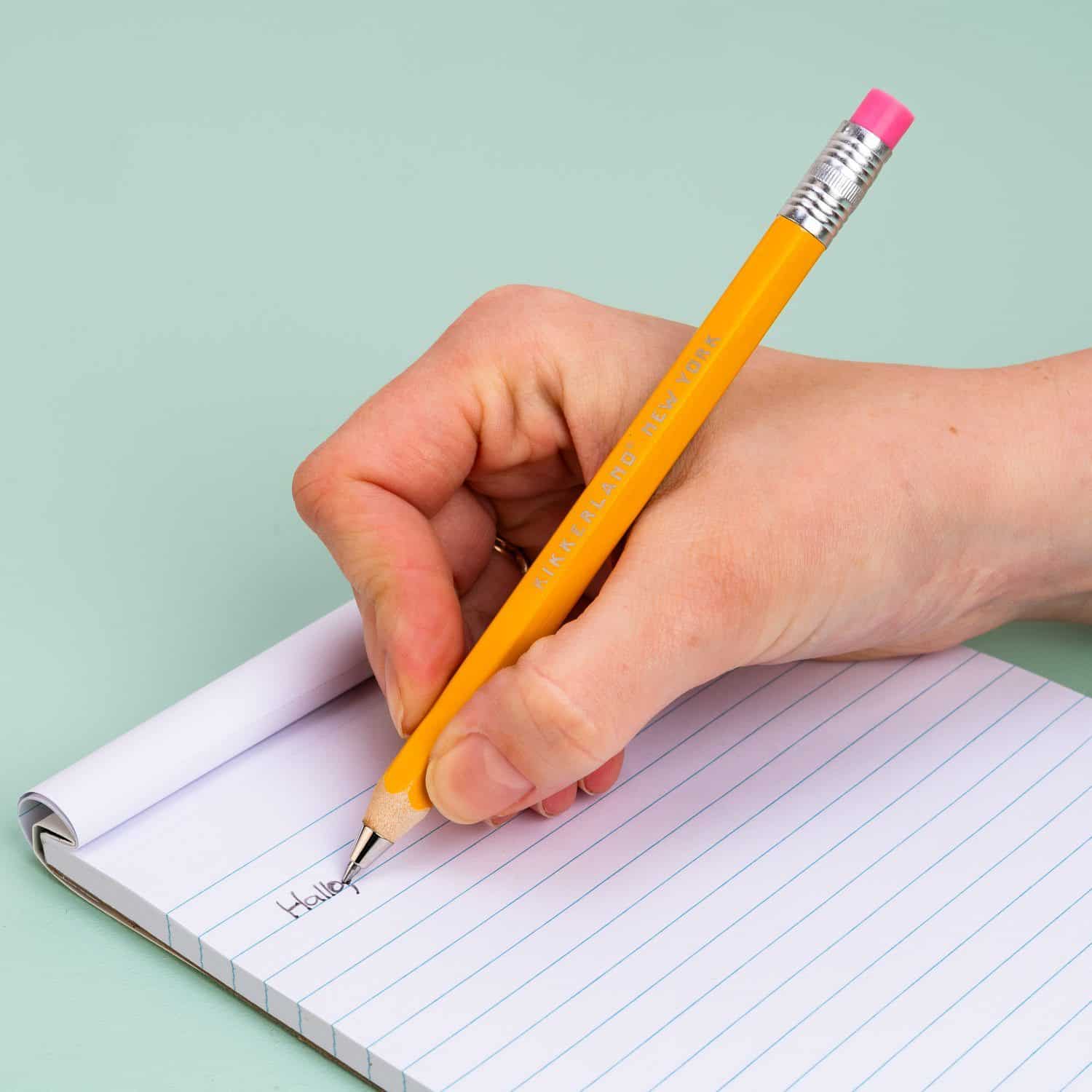 - Das bekannte Schulbleistift-Design, aber als Stift