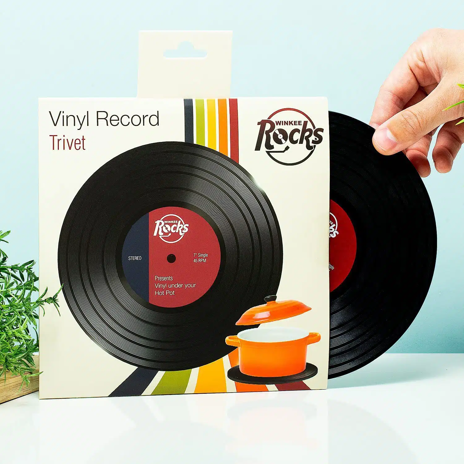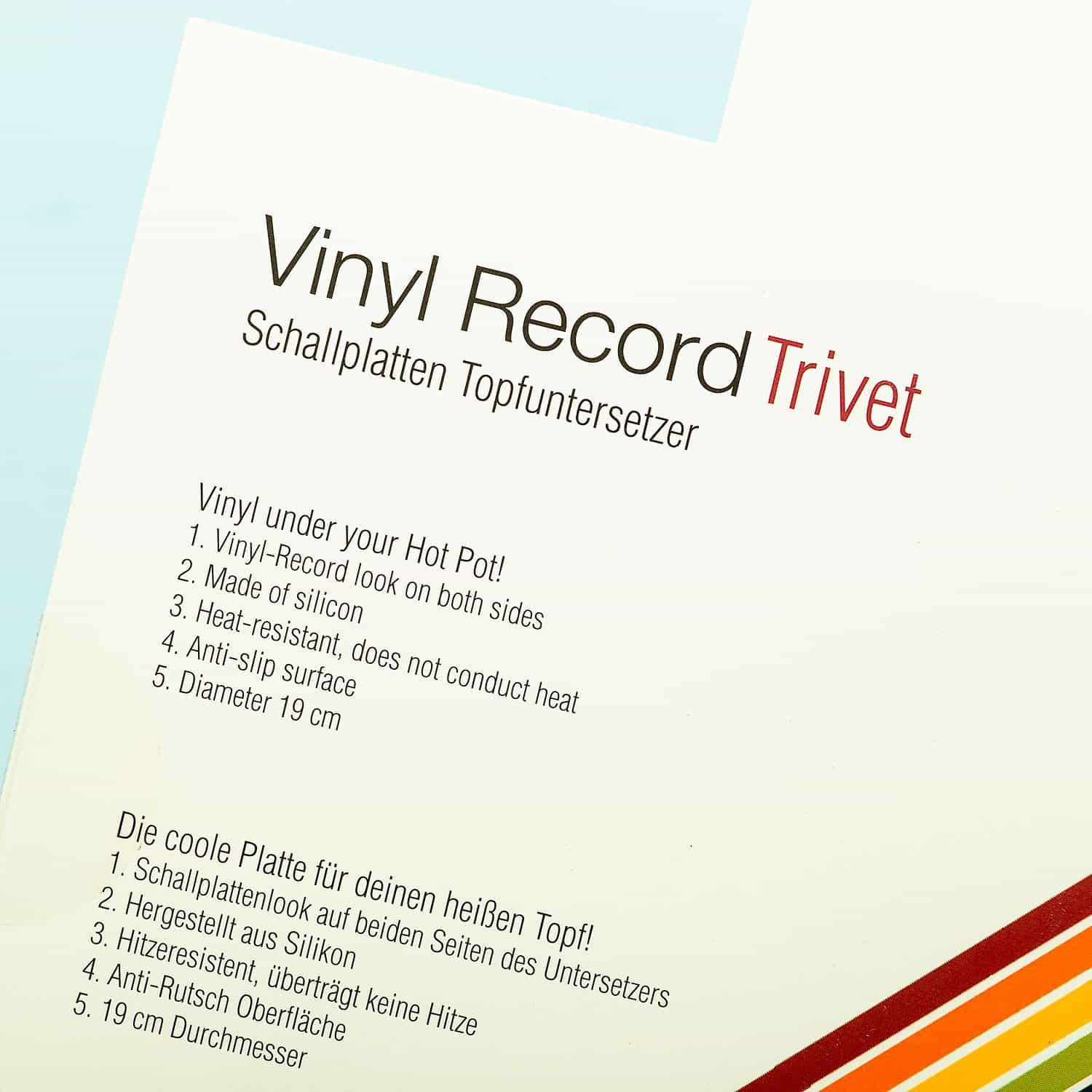 Schรผtzen Sie Ihren Tisch vor einer heiรŸen Pfanne: Das ist immer eine gute Idee. Dafรผr eignet sich der LP-Pfannenuntersetzer Winkee sehr gut. AuรŸerdem ist er eine Bereicherung fรผr alle, die noch gerne Schallplatten hรถren. Haben Sie auch gerne originelle Dinge zu Hause? Dieser Untersetzer in Form einer LP ist es auf jeden Fall. Der Silikonuntersetzer ist einfach zu handhaben und sorgt dafรผr, dass Ihre Theke und Ihr Tisch unbeschรคdigt bleiben.