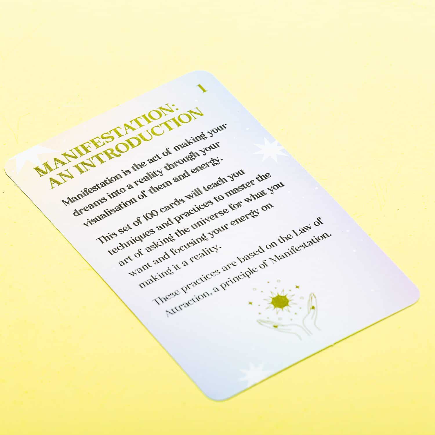 Glauben Sie an die Kraft der Manifestation, sind sich aber nicht sicher, wie sie funktioniert? Die Manifest Lifestyle-Karten von Gift Republic helfen Ihnen dabei. Die hundert Karten enthalten Techniken und รbungen, mit denen Sie das Universum bitten, Ihre Trรคume wahr werden zu lassen.