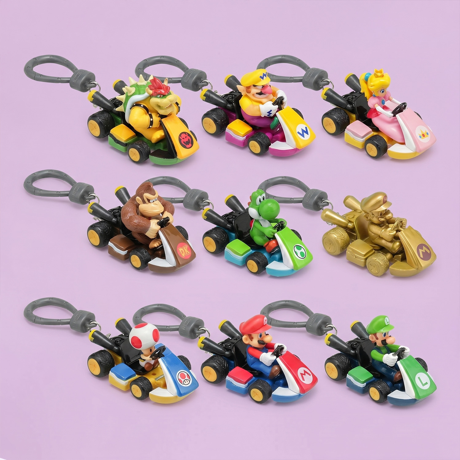 Gib deinem Rucksack ein Mario Kart-Upgrade. Der Mario Kart Backpack Buddy ist eine Überraschungstüte mit einem Figürchen von einem der neun ikonischen Mario Kart-Charaktere, inklusive eines limitierten goldenen Marios. Befestige ihn mit dem Schlüsselanhänger an deiner Tasche und nimm deinen Lieblingscharakter überall mit. Entscheidest du dich für Yoshi, Bowser oder doch Princess Peach?