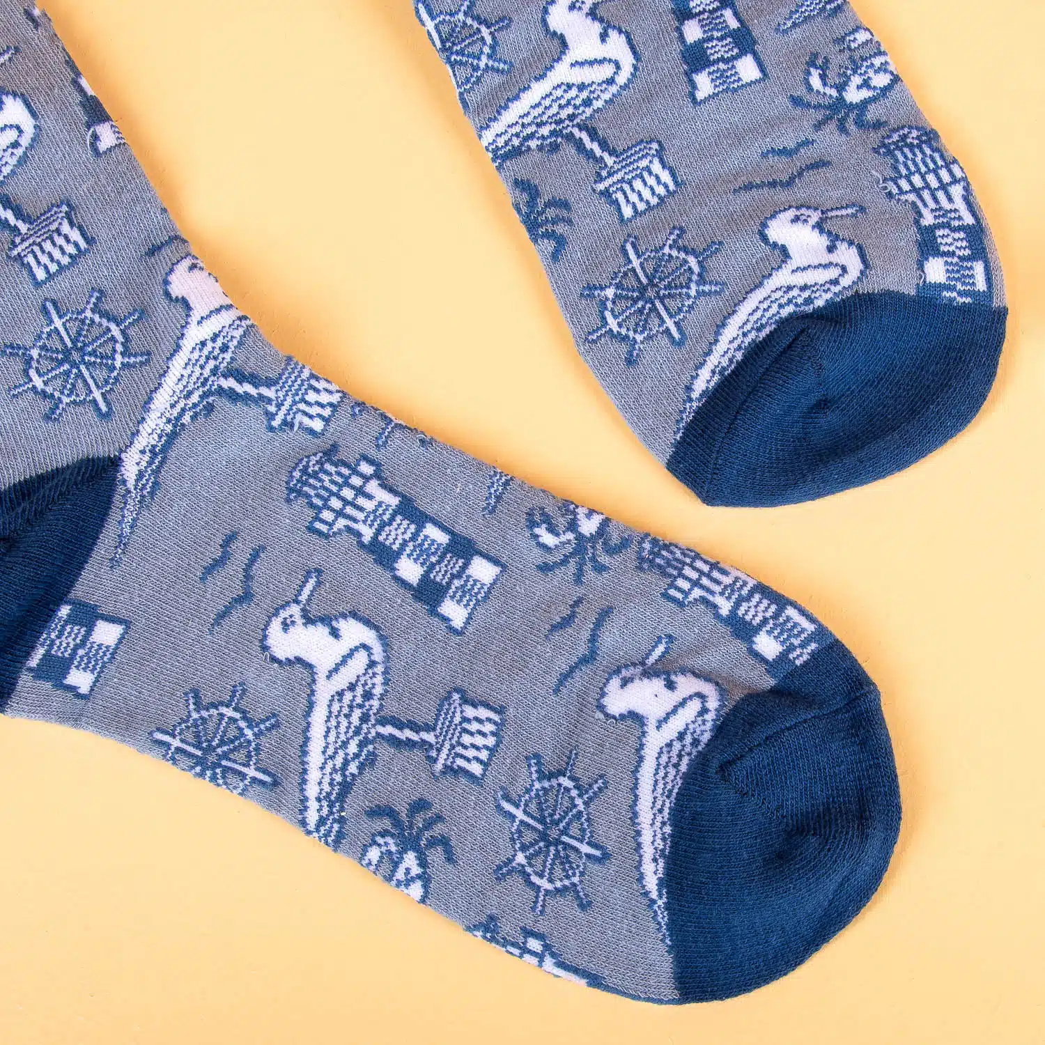 Die Maritim-Socken sind fรผr alle, die das Meer lieben. Mit Mรถwen, Ankern, Leuchttรผrmen und maritimen Symbolen. Perfekt fรผr Segler, Strandliebhaber oder einfach als lustiges Geschenk fรผr jemanden, der immer รผber den einen Segelurlaub redet. Ein Blick und du riechst schon die Meeresluft (oder sind es deine FรผรŸe?).