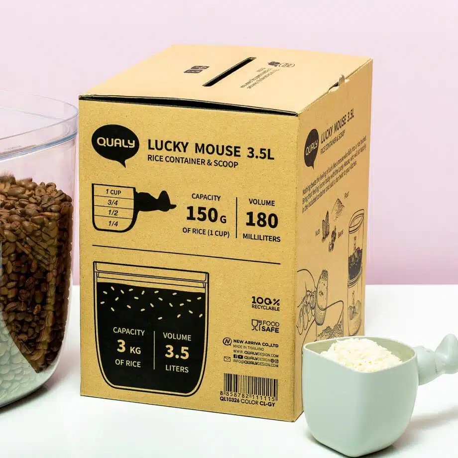 Kaufst du gerne Reis, Zucker und andere Lebensmittel in großen Säcken? Dann bewahre sie praktisch im Maus Aufbewahrungsbehälter von Qualy auf. Das ist nicht nur einfacher, wenn du es das nächste Mal wieder verwenden möchtest, sondern auch sehr witzig. Vor allem, wenn du jemand anderen den Zucker holen lässt. Denn der Messlöffel hat einen kleinen Mausgriff. Der Löffel hat ein Fassungsvermögen von einer Tasse (150 Gramm). Dieser Aufbewahrungsbehälter ist ideal für Dinge wie Mehl und Kaffeebohnen.