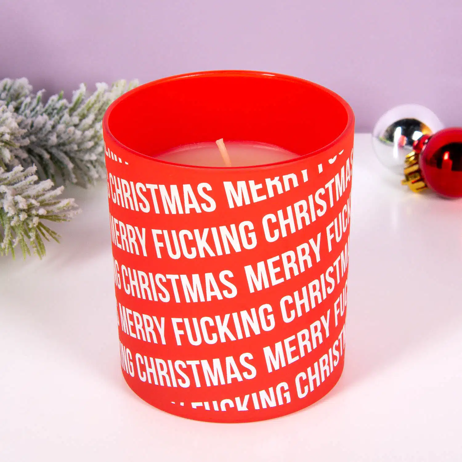 Die Merry Fucking Christmas Kerze von Fisura ist eine lustige Kerze im Glas mit einer Botschaft, die deutlich macht, dass du überhaupt keine Lust auf Weihnachten hast. Auf dem Glas steht nämlich: Merry Fucking Christmas. Und nicht nur einmal, sondern dutzende Male. Ein witziges Geschenk für alle, die es nicht ausstehen können, dass im September schon wieder Weihnachtsmusik gespielt wird.