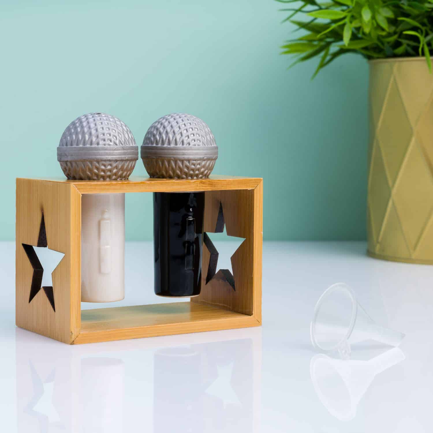 - Pfeffer-Salz-Set in Form von Mikrofonen