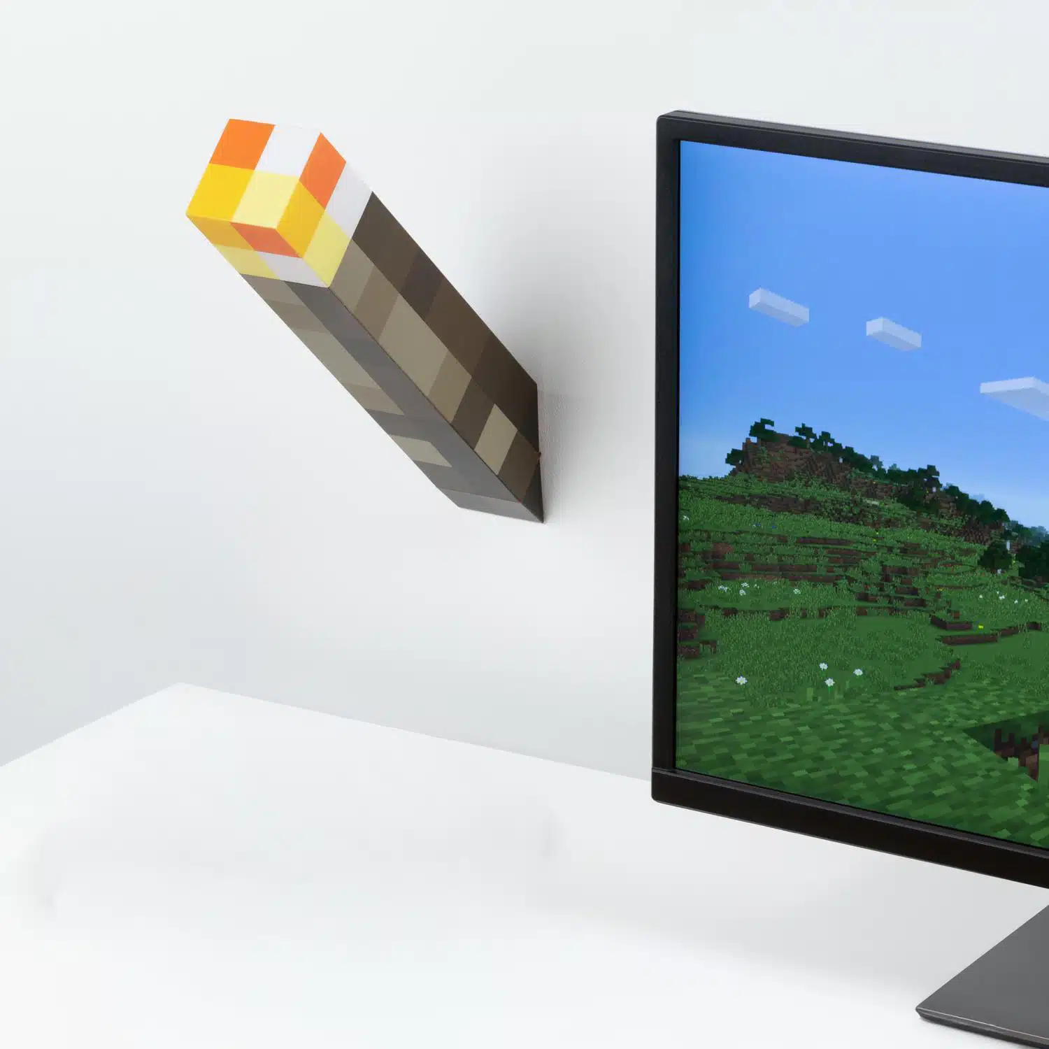 Verwandle dein Schlafzimmer in ein echtes Minecraft-Zimmer mit der Fackel Lampe. Diese Lampe kann wie im Spiel entweder aufrecht stehen oder an der Wand befestigt werden. Ein perfekter Stimmungsmacher für jedes Minecraft-Fan-Zimmer.
