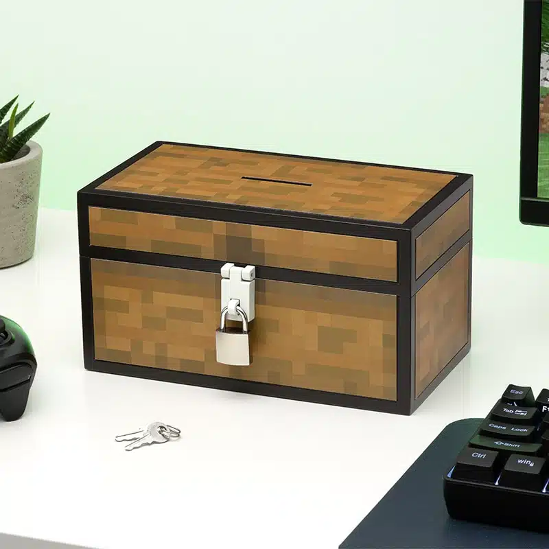 Upgrade dein Spargame! Die Koffer Spardose von Minecraft ist eine Spardose in Form der ikonischen Chest aus dem Spiel. Mit dem mitgelieferten Vorhรคngeschloss kannst du dein Taschengeld sicher aufbewahren – wie dein eigener Vault in der Overworld! Perfekt fรผr alle Block-Builder und Crafting-Champions, die fรผr ihr nรคchstes Abenteuer sparen wollen. Ein cooles Geschenk fรผr Minecraft-Fans!