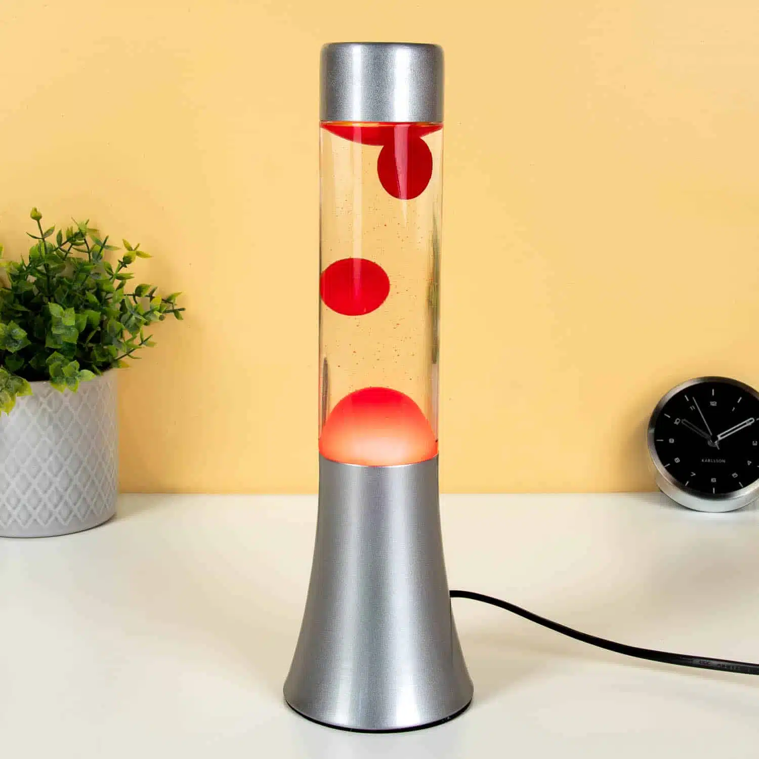 • Coole Lavalampe im kompakten Format mit roter Lava