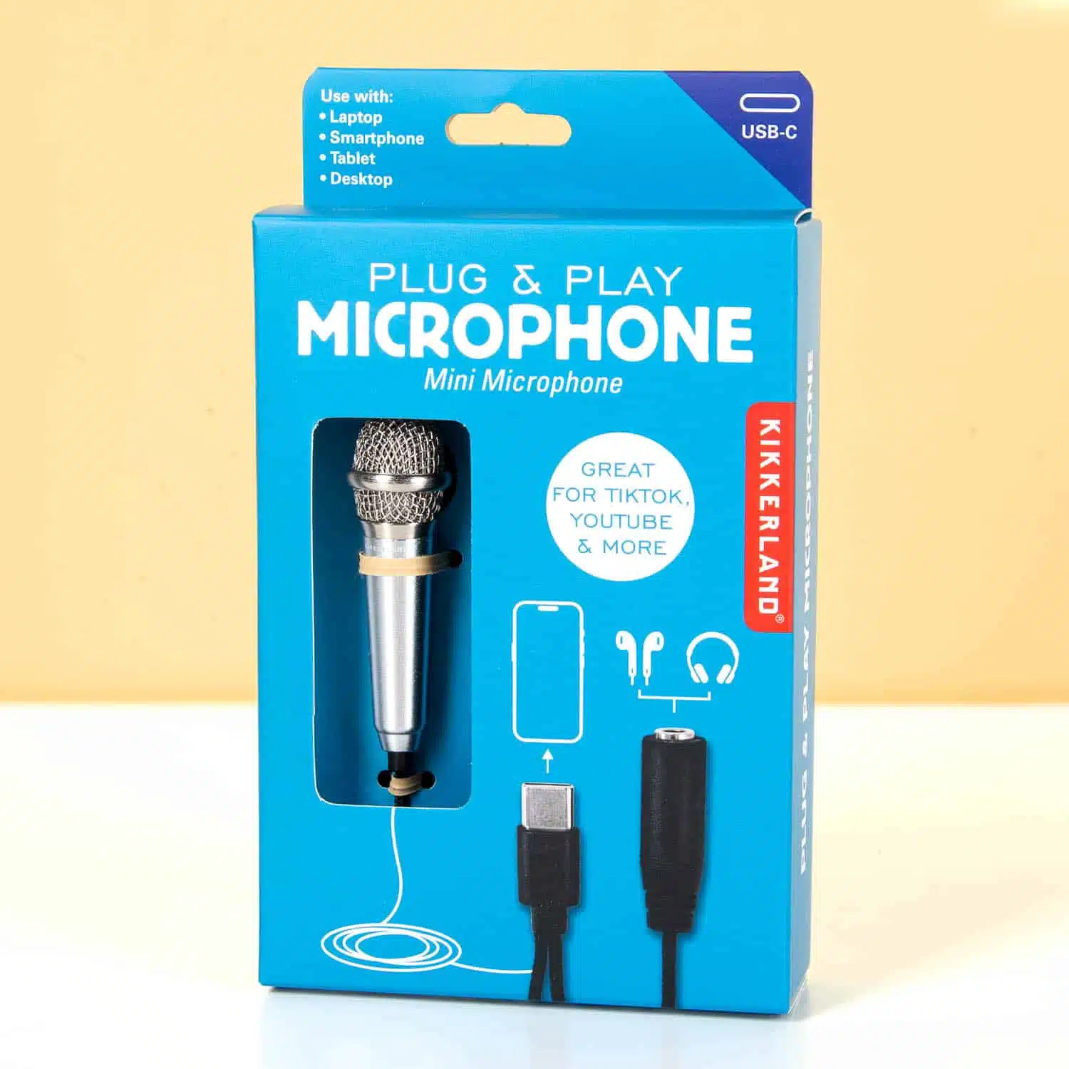 Stehst du gerne im Rampenlicht? Singst du am liebsten jeden Tag? Dann ist das Mini-Mikrofon (USB-C) von Kikkerland genau das Richtige fรผr dich. Verwandยญle dein Schlafzimmer, Bรผro oder die Schulkantine in eine Karaoke-Bar! Das silberne Mikrofon wird ganz einfach an den USB-C-Anschluss deines Smartphones gesteckt. Es sorgt fรผr eine gute Klangqualitรคt und klare Sprache โ€“ perfekt zum Singen oder fรผr deine Social-Media-Clips.