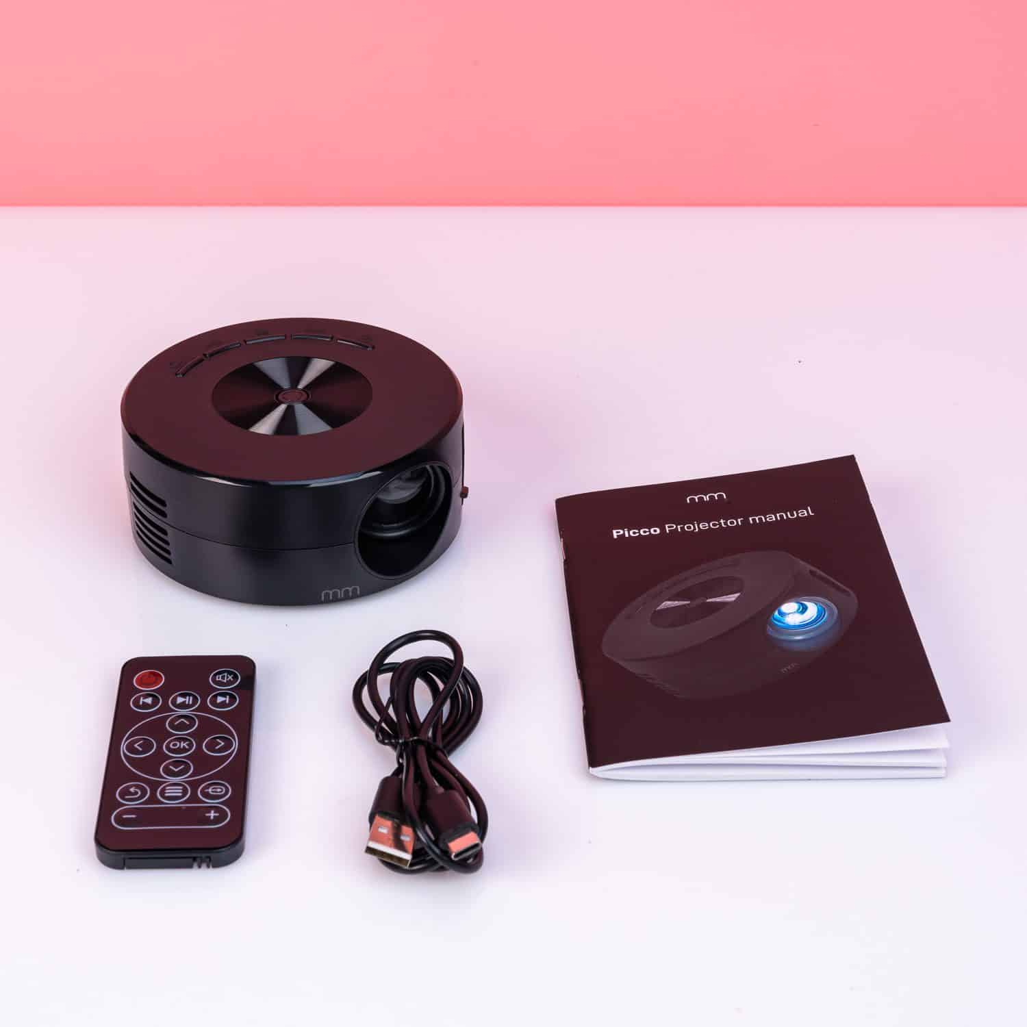 - Der Projektor funktioniert über einen USB-Anschluss und ist kompatibel mit Powerbanks