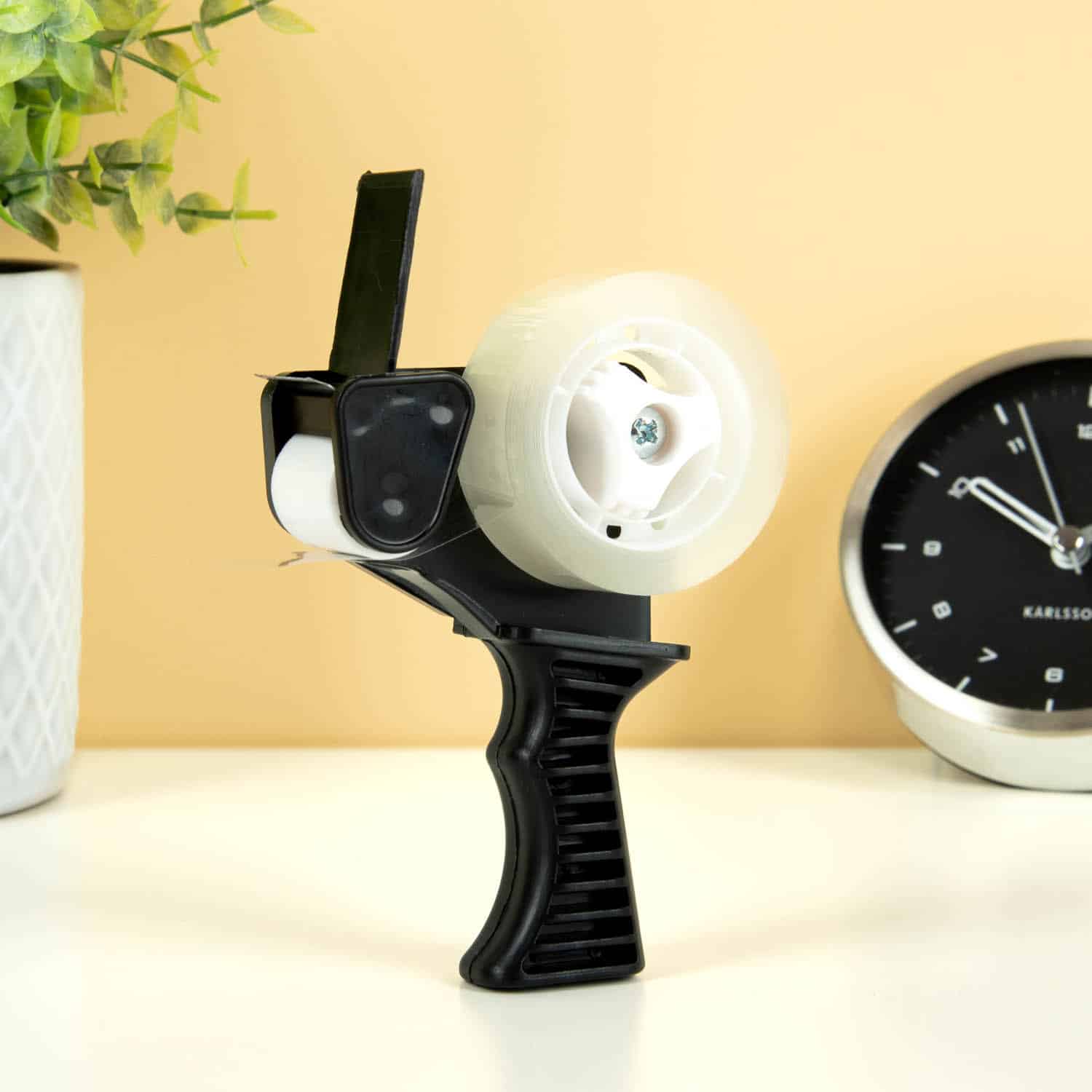 Wenn du schon einmal in einem Lager gearbeitet hast, kommt er dir sicher bekannt vor: der Tapedispenser. Dieser praktische Klebebandhalter sorgt dafรผr, dass du Kartons und Pรคckchen ganz einfach verschlieรen kannst. Der Mini-Tapedispenser ist von diesem Klassiker inspiriert, aber fรผr normale kleine Klebebandrollen gedacht โ perfekt fรผr deinen Schreibtisch.