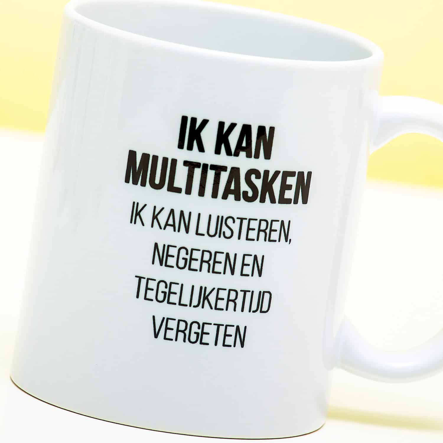 Multitasking ist nicht unbedingt eine Eigenschaft, fรผr die Mรคnner bekannt sind, aber einige sind wirklich gut darin. Fรผr sie ist die Mok Multitasken ein perfektes Geschenk. Auf dieser Tasse steht der Text: Ich kann multitasken. Ich kann zuhรถren, ignorieren und gleichzeitig vergessen.