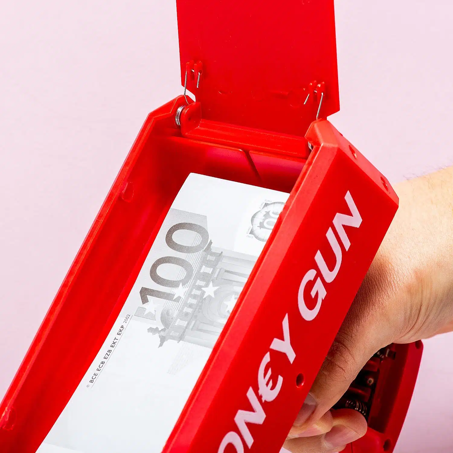 Zeige deine härteste Seite mit der Money Gun von Out of the Blue. Mit dieser Money Gun schießt man mit Euro herum, als wäre es nichts. Die auffällig rote Geldpistole kommt mit hundert 100-Euro-Scheinen, also beruhigt: Das eigene Geld kann einfach im Portemonnaie bleiben.