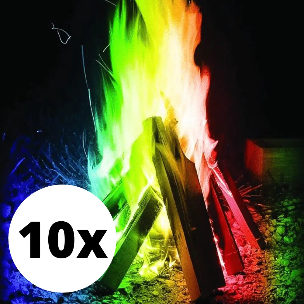 Mystical Fire ist ein magisches Pulver, das fรผr farbiges Feuer sorgt. Bist du ein Fan von einem gemรผtlichen Kaminfeuer oder einem Lagerfeuer am Strand? Das Feuer wird noch viel schรถner, wenn du Mystical Fire verwendest. Das Pulver sorgt fรผr wunderschรถn gefรคrbte Flammen. Wenn du ein bis drei Pรคckchen Mystical Fire auf ein Holzfeuer gibst, kannst du etwa eine halbe Stunde lang ein herrlich farbiges Feuer genieรen. Mรถchtest du intensivere Farben, verwende drei Pรคckchen statt eines. Mystical Fire ist wunderschรถn im offenen Kamin, in einem Lagerfeuer und wenn du eine Party mit Feuerkรถrben im Garten gibst. Das Pulver funktioniert nur mit Holzfeuer. Bei einer Gartenparty oder Hochzeit verleihen die Flammen einen zusรคtzlichen festlichen Touch. Sieh zu, wie das Feuer grรผn, blau, lila, rosa, rot und orange wird.