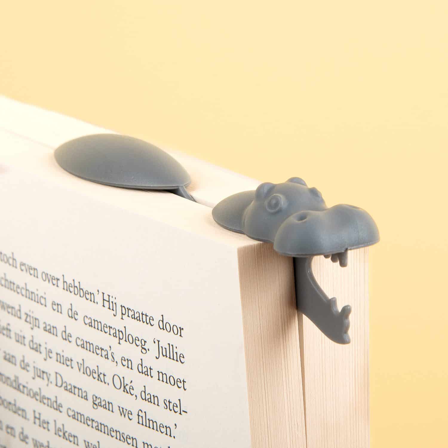 Auch keine Lust auf Eselsohren in deinem Buch? Peleg Design hat da etwas fรผr dich. Sie haben nรคmlich ein Nilpferd-Lesezeichen entworfen, mit dem du die richtige Seite in deinem Roman oder Thriller schnell findest. Dieses originelle Lesezeichen hat die Form eines Nilpferds. Nachdem du mit dem Lesen fertig bist, steckst du das Nilpferd zwischen die Seiten, wo du aufgehรถrt hast. Da das Nilpferd an der Oberseite etwas breiter ist, bleibt es zwischen den Seiten hรคngen. So รถffnest du das Buch immer auf der richtigen Seite. Ideal als Geschenk fรผr den Bรผcherwurm in deinem Freundeskreis.