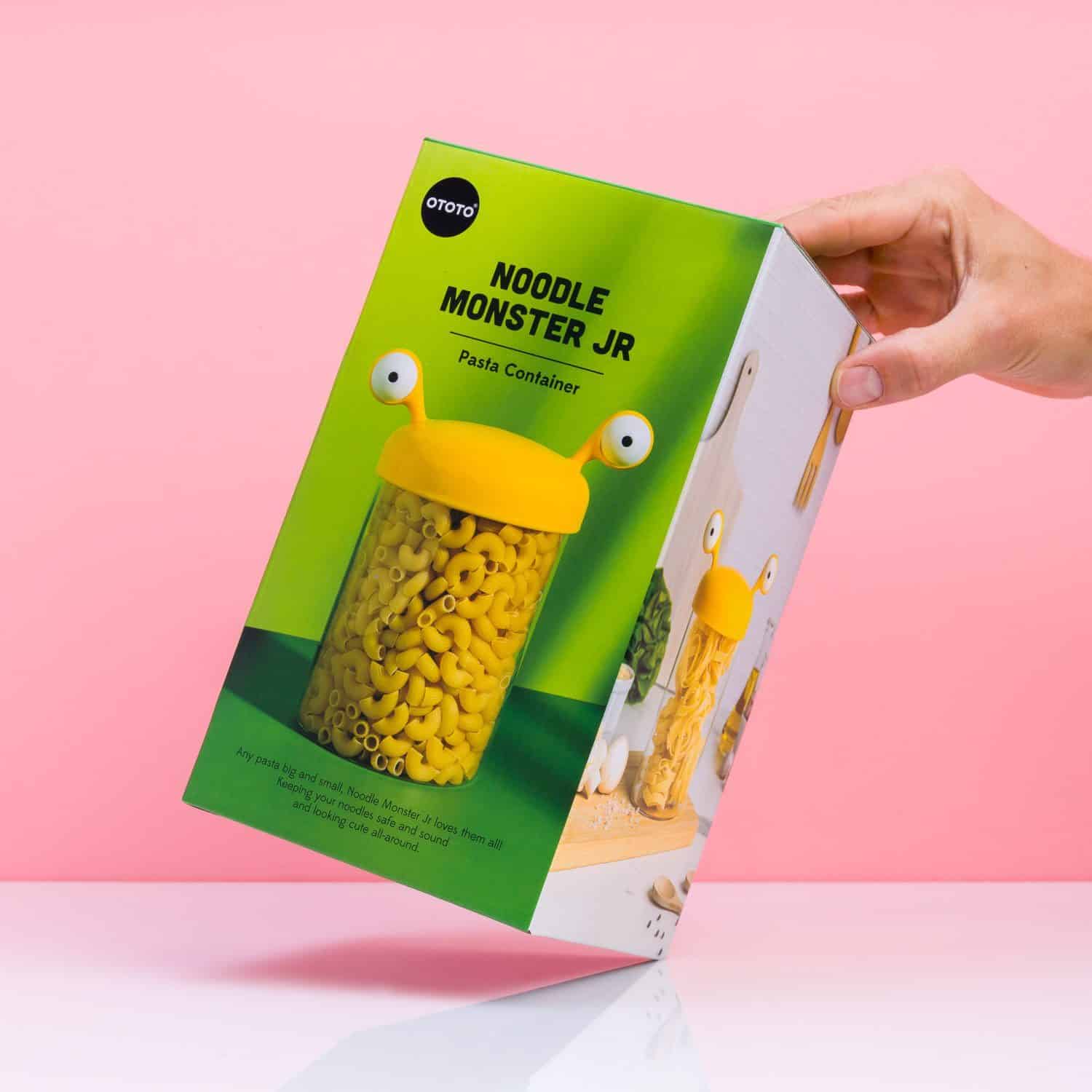 Er sieht in Ihrem Küchenschrank gut aus, aber draußen noch schöner: der Noodle Monster Vorratsbehälter von Ototo. Dieser praktische Aufbewahrungsbehälter ist transparent, verfügt aber über einen auffälligen Deckel. Das Pastamonster, unter anderem auch bekannt durch das Sieb und die Servierlöffel aus derselben Kollektion. Mit seinem gelben Gesicht und den weit auseinander liegenden Augen ist dies ein besonderer Aufbewahrungsbehälter für Ihre Makkaroni, Fusilli und Farfalle.