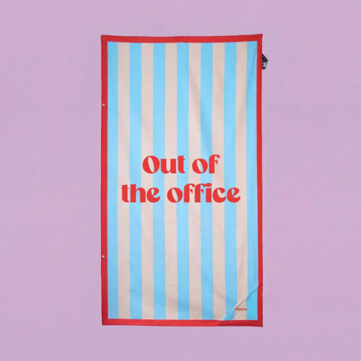 Du hast deine Abwesenheitsnotiz eingeschaltet und das darf jeder wissen. Das Out of the Office Strandtuch von Fisura ist ein blau-weiร gestreiftes Badetuch mit einem frรถhlichen roten Rand und dem Text OUT OF THE OFFICE in roten Buchstaben. Leg es hin, leg dich drauf und lass die Welt einfach mal warten.