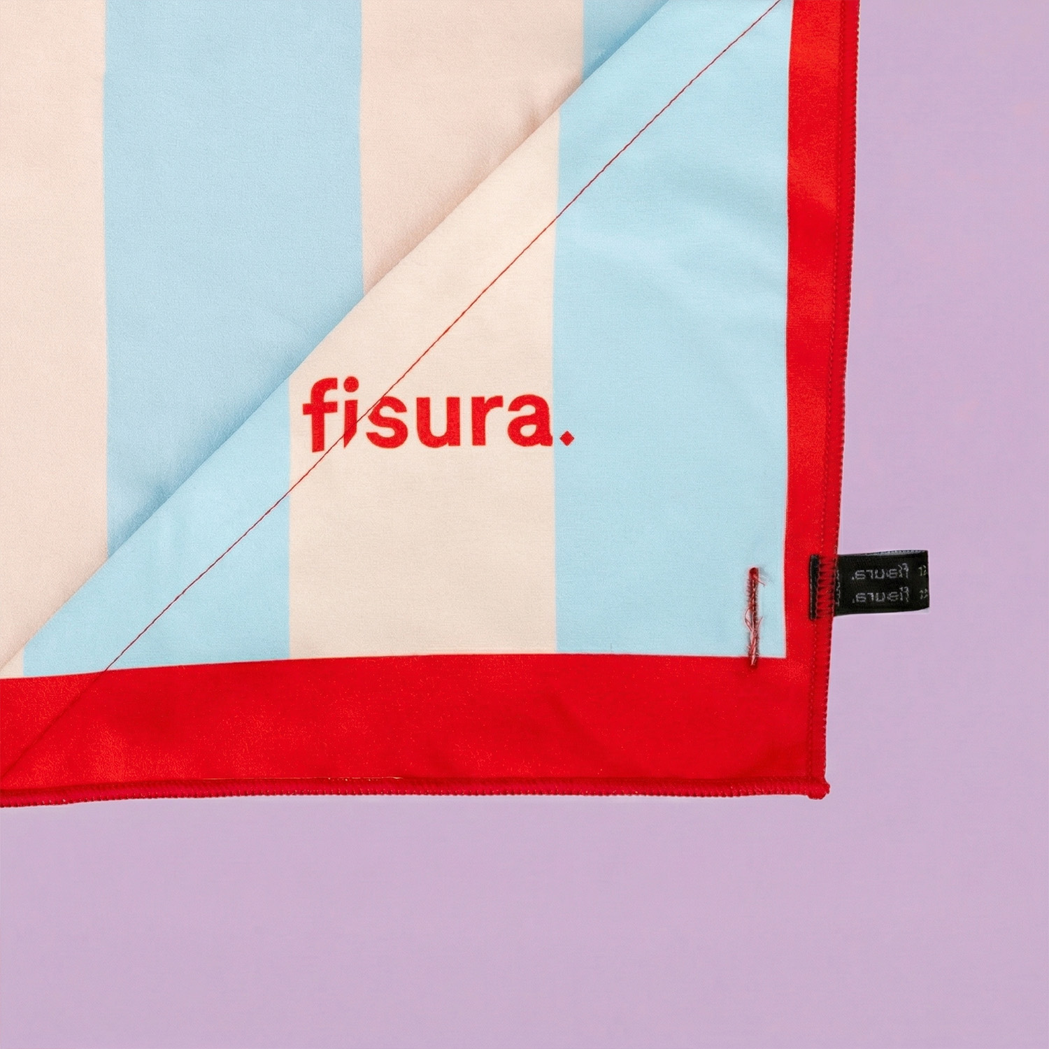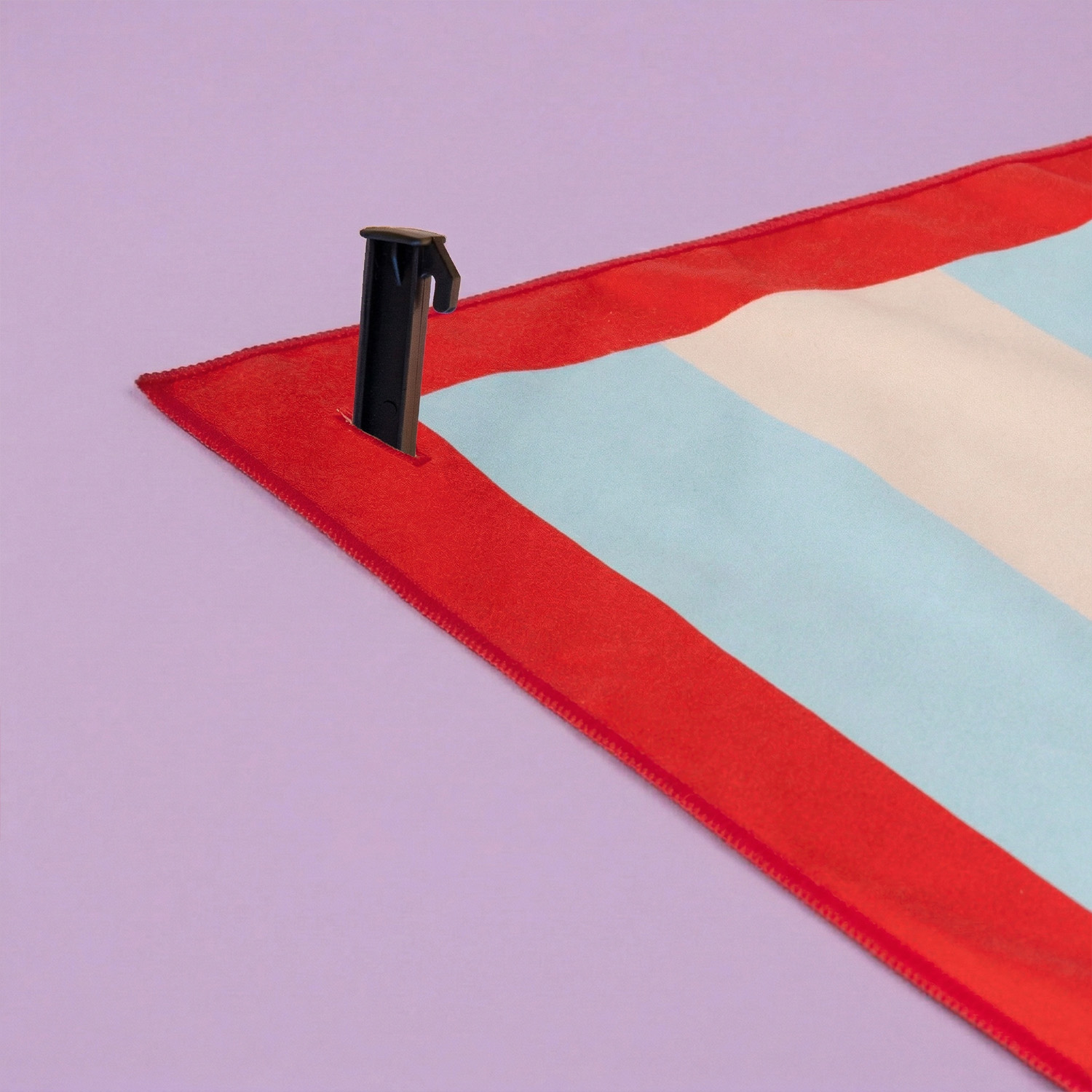 - Blau-weiร gestreiftes Strandtuch mit rotem Rand