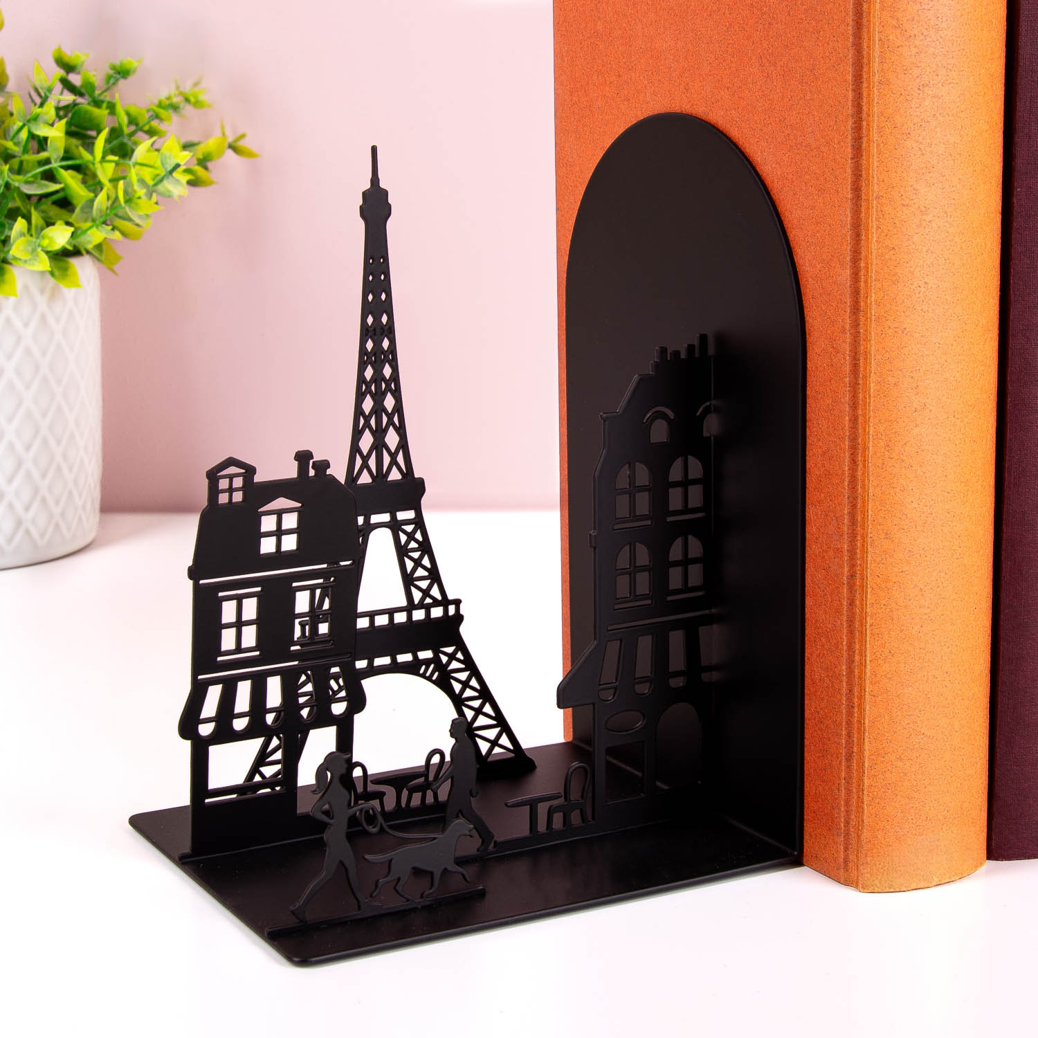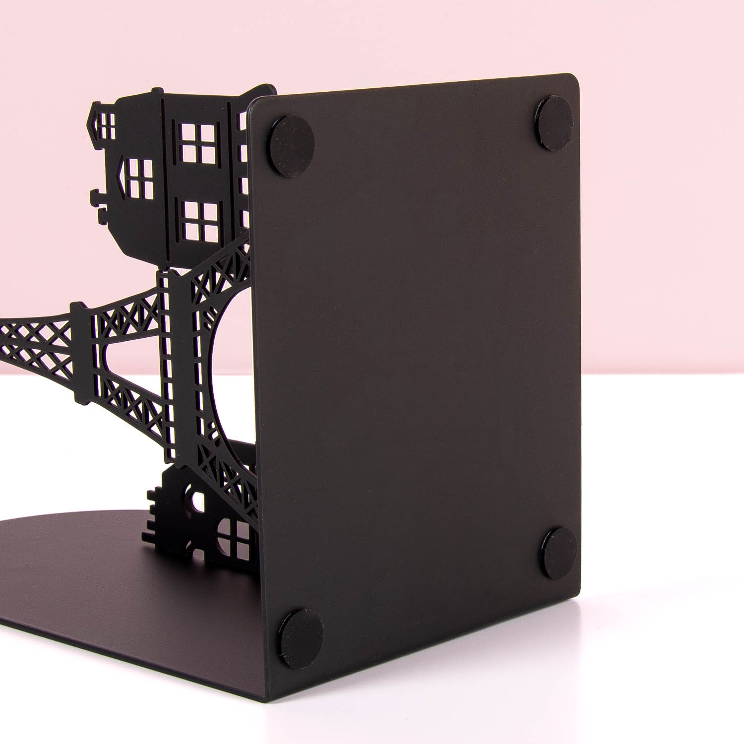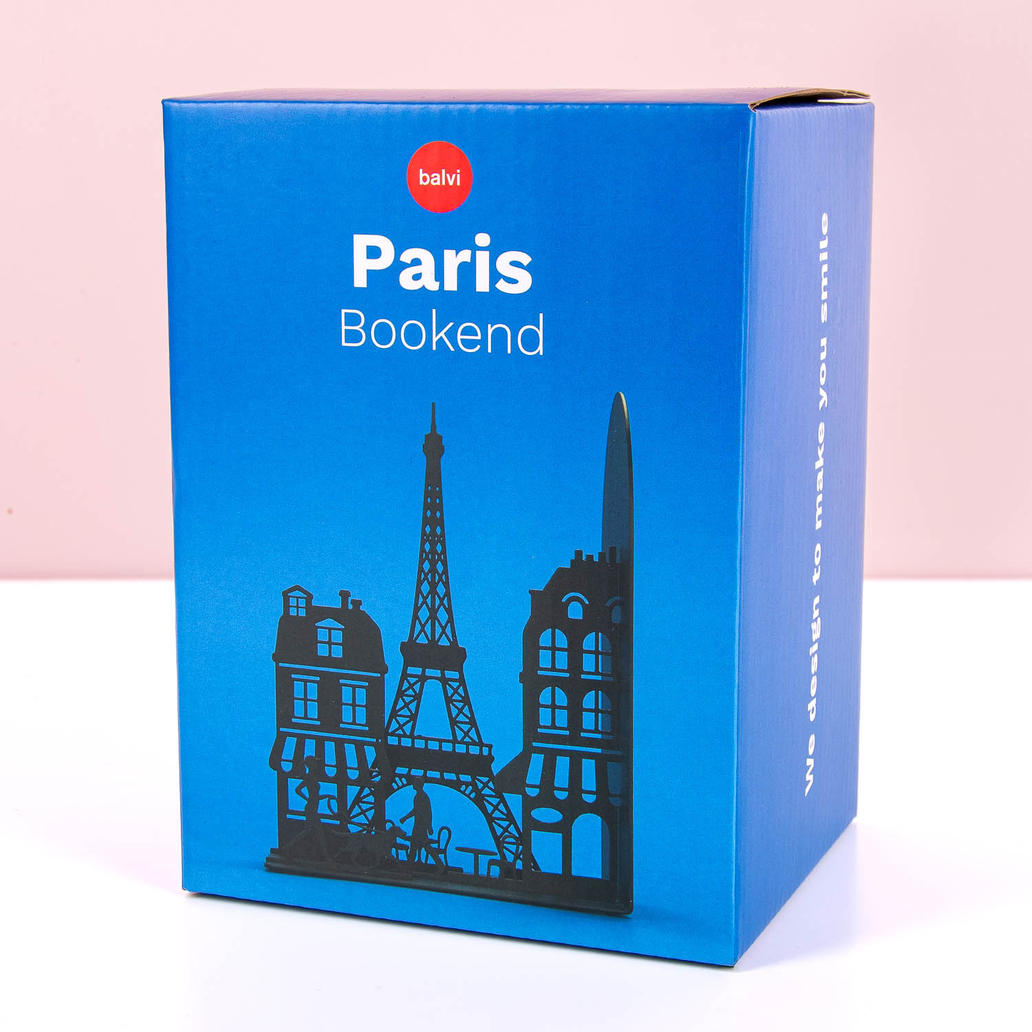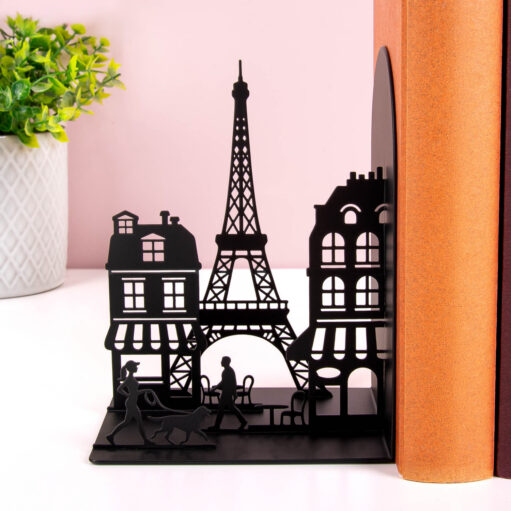Deine Bücher verdienen einen schönen Platz. Die Paris-Buchstütze von Balvi ist eine schwarze Metallbuchstütze mit der Skyline von Paris: dem Eiffelturm, einem klassischen Pariser Bistro und dem ganzen Charme, der dazugehört. Hält deine Bücher aufrecht und verleiht deinem Regal sofort Pariser Flair. Perfekt für alle, die das Lesen und die Stadt der Liebe lieben.