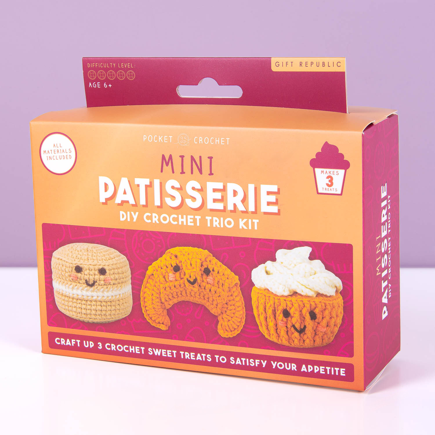 Bäckst du lieber mit Wolle als mit Mehl? Mit dem Patisserie-Häkelset von Gift Republic holst du köstliche Backwaren ins Haus – ganz ohne Kalorien. Häkle deinen eigenen Croissant, dein eigenes Törtchen und dein eigenes Macaron, alle mit einem niedlichen Gesichtchen. Egal ob Anfänger oder schon etwas erfahrener: Das Set enthält alles, was du brauchst, um direkt loszulegen.