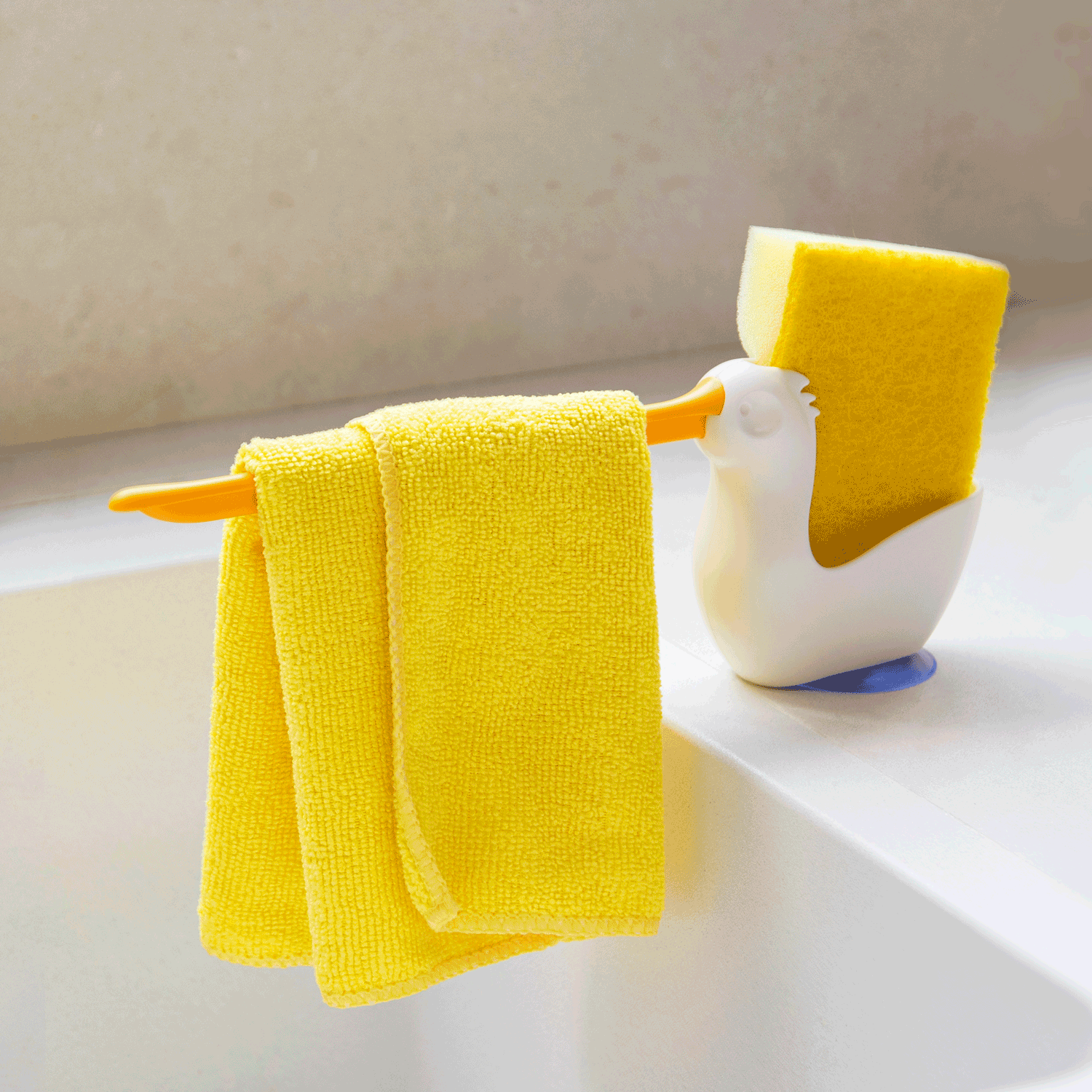 Was ist das für ein merkwürdiger Vogel an deiner Spüle? Das ist Pelix. Die Pelix Küchenhilfe von Peleg Design ist unverzichtbar, wenn du ein aufgeräumtes Zuhause liebst. Dieser lustige Vogel hat einen langen Schnabel, über den du dein Geschirrtuch hängen kannst, damit es schneller trocknet. In Pelix’ offenem Rücken kannst du deinen Schwamm verstauen. Dank des starken Saugnapfes bleibt diese Küche Helferlein ordentlich an seinem Platz. Hast du kein Tuch daran hängen, kannst du ihn auch einfach drehen.