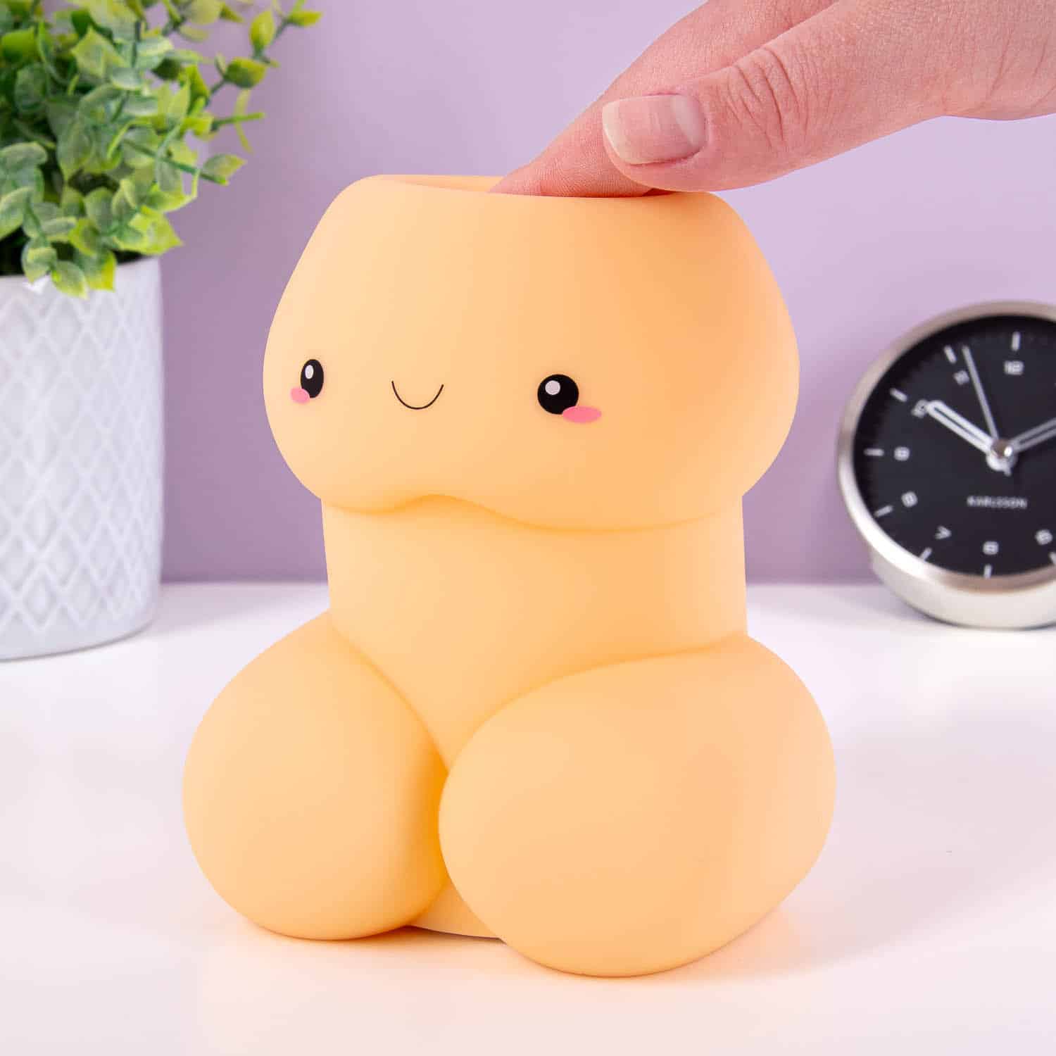 Du schlรคfst lieber nicht im Dunkeln, willst aber kein langweiliges Nachtlicht? Dann ist das Penis-Nachtlicht von MikaMax genau das Richtige fรผr dich! Dieses witzige Nachtlicht aus weichem Silikon hat ein niedliches Gesicht und sorgt mit seinen drei Helligkeitsstufen fรผr genau das richtige Licht zum Einschlafen. Dank Touchsensor lรคsst sich das Licht ganz einfach ein- und ausschalten oder dimmen โ und nach drei Stunden schaltet es sich automatisch ab.