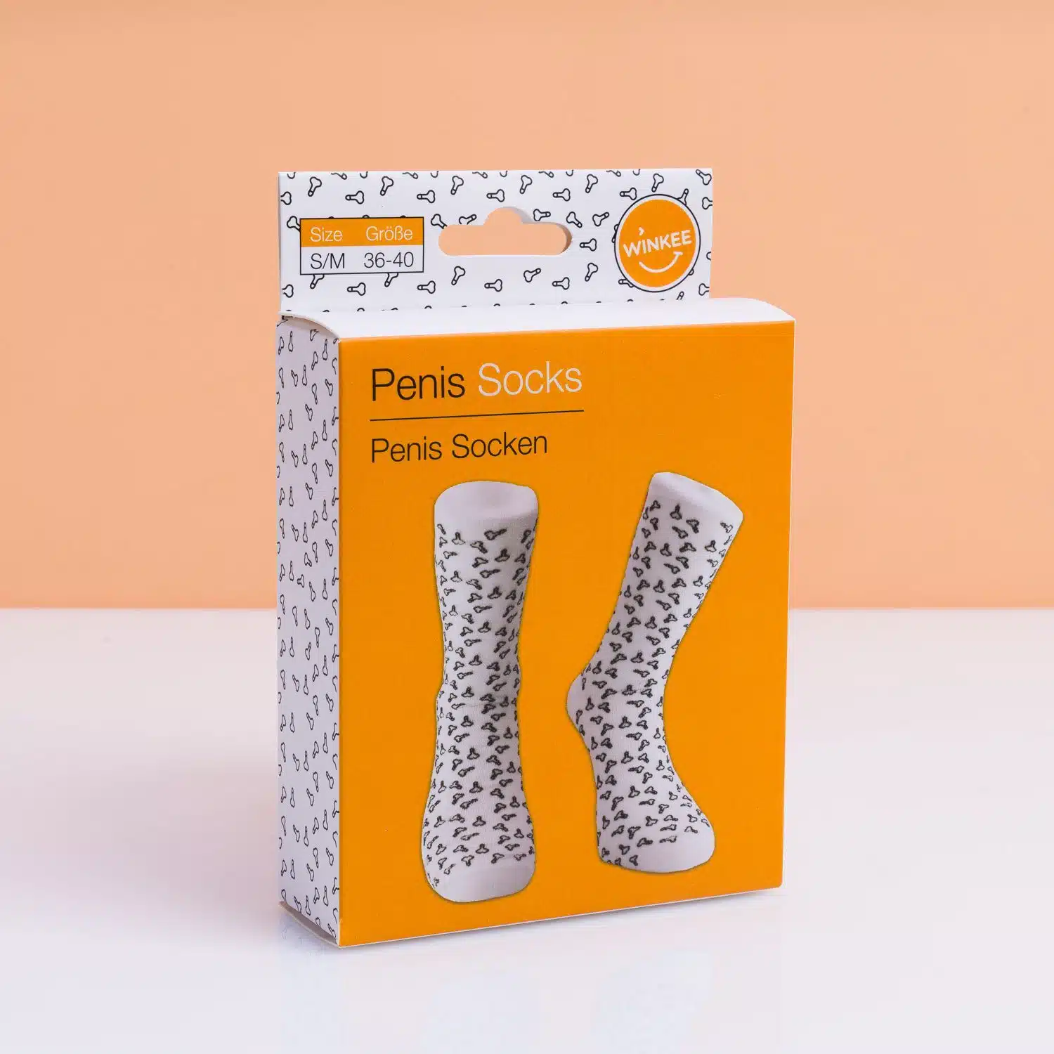 Bist du immer für einen Scherz zu haben? Trage die Penis-Socken von Winkee mal zum Spaß zur Arbeit und schau, wie lange es dauert, bis jemand merkt, was du anhast. Diese lustigen weißen Socken sind mit Dutzenden von Penissen verziert. Das macht sie auch zu einem sehr passenden Geschenk für zum Beispiel Junggesellenabschiede.