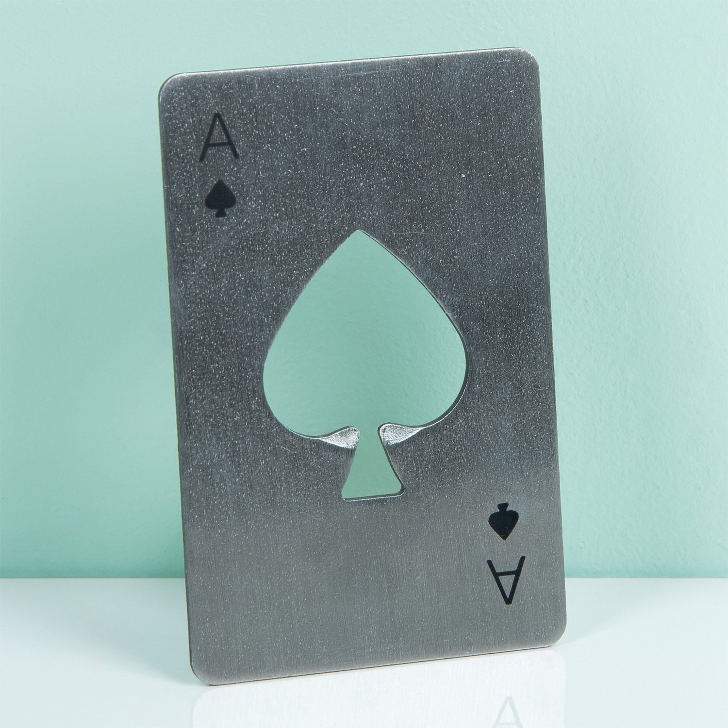 - Flaschenöffner, der aussieht wie ein Pik-Ass als Spielkarte