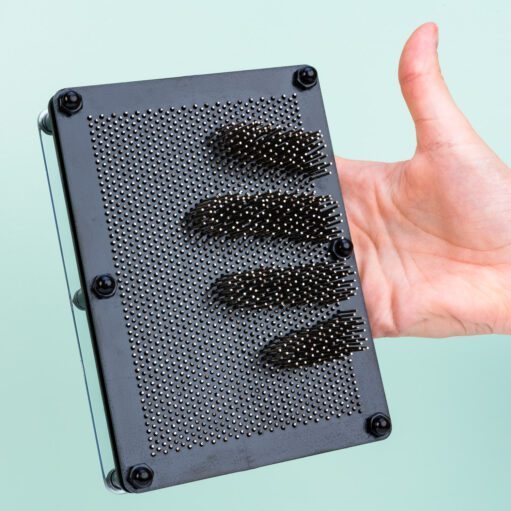Früher war es ein beliebter Zeitvertreib und wir verstehen warum. Das Spielen mit dem Pinpressions Nagelbett von Out of the Blue macht großen Spaß! Das Nagelbett bzw. Nagelkissen ist für die Herstellung von Figuren gedacht. Dies erreichen Sie, indem Sie mit der Hand oder anderen Gegenständen auf die Metallstifte auf der Rückseite drücken. Sie können Ihre Kreation vorne, auf der Seite mit dem Plexiglas, bewundern. Wenn es fehlschlägt, drehen Sie es einfach um und beginnen Sie erneut.