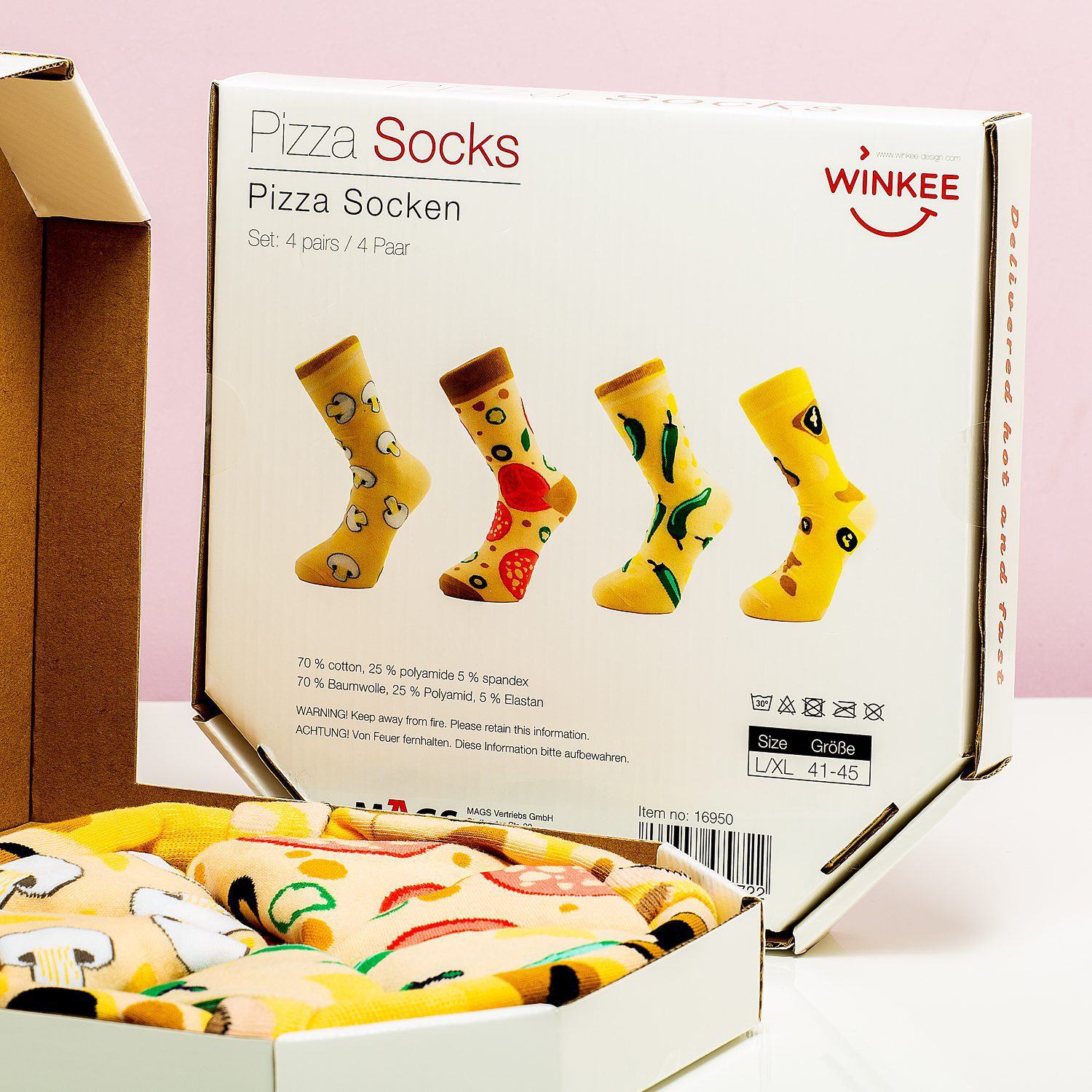 Pizzabox mit vier Paar Pizzasocken von Winkee