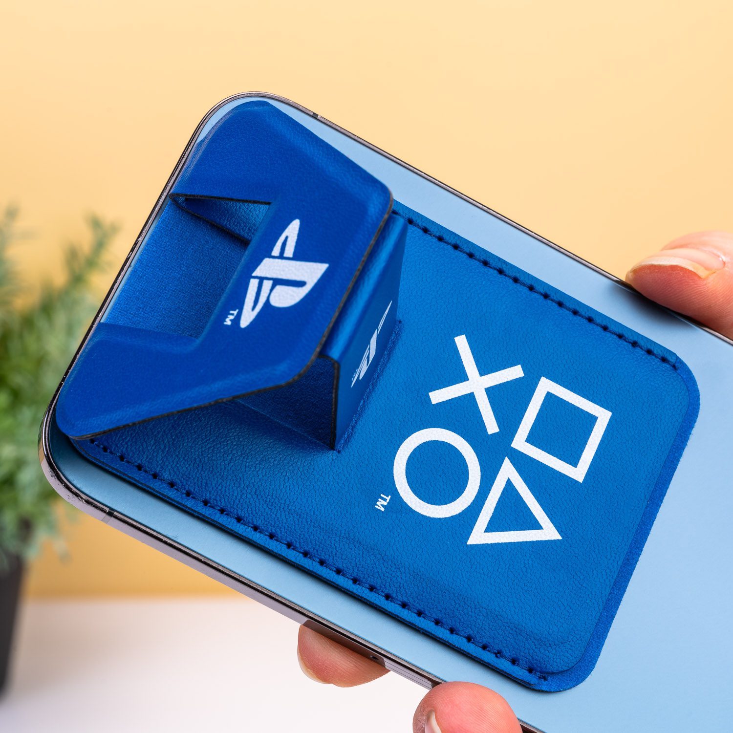 Vergisst du oft deinen Ausweis, Führerschein oder deine Bankkarte? Dann haben wir etwas Praktisches für dich: den Kartenhalter und Telefonständer von PlayStation. Dieser Kartenhalter – mit PlayStation-Logo und -Symbolen – wird an deinem Telefon befestigt, sodass du immer deine wichtigsten Karten dabei hast. Außerdem kann der Kartenhalter als Telefonständer verwendet werden, ideal zum Facetimen oder Videos schauen.
