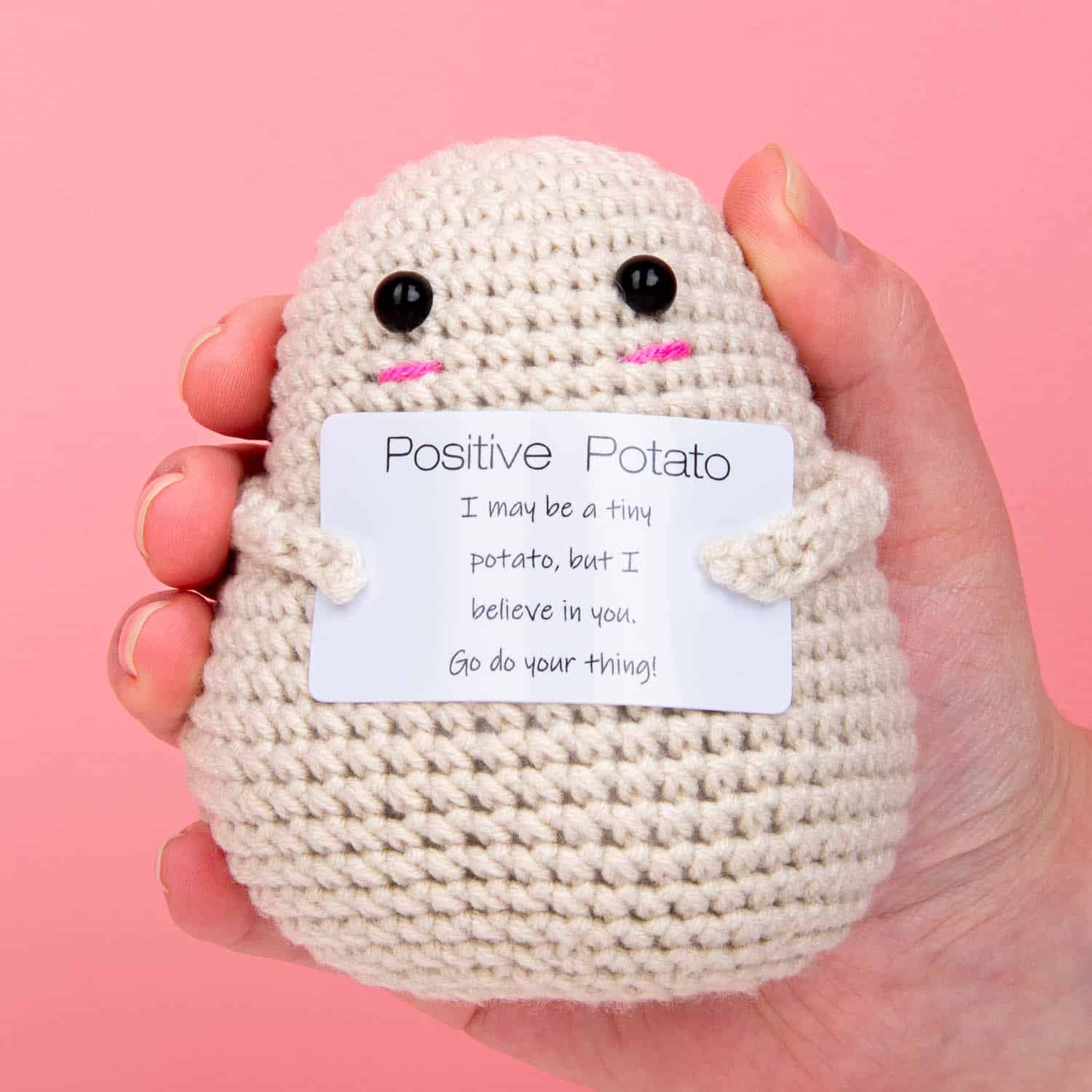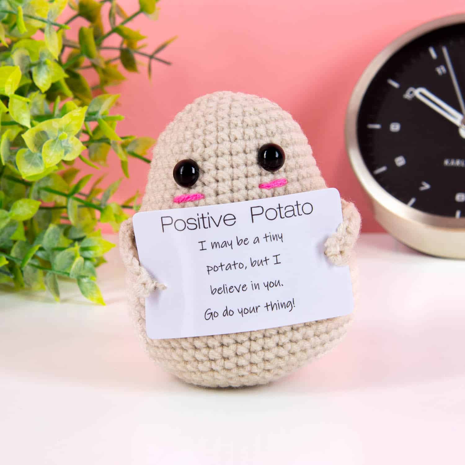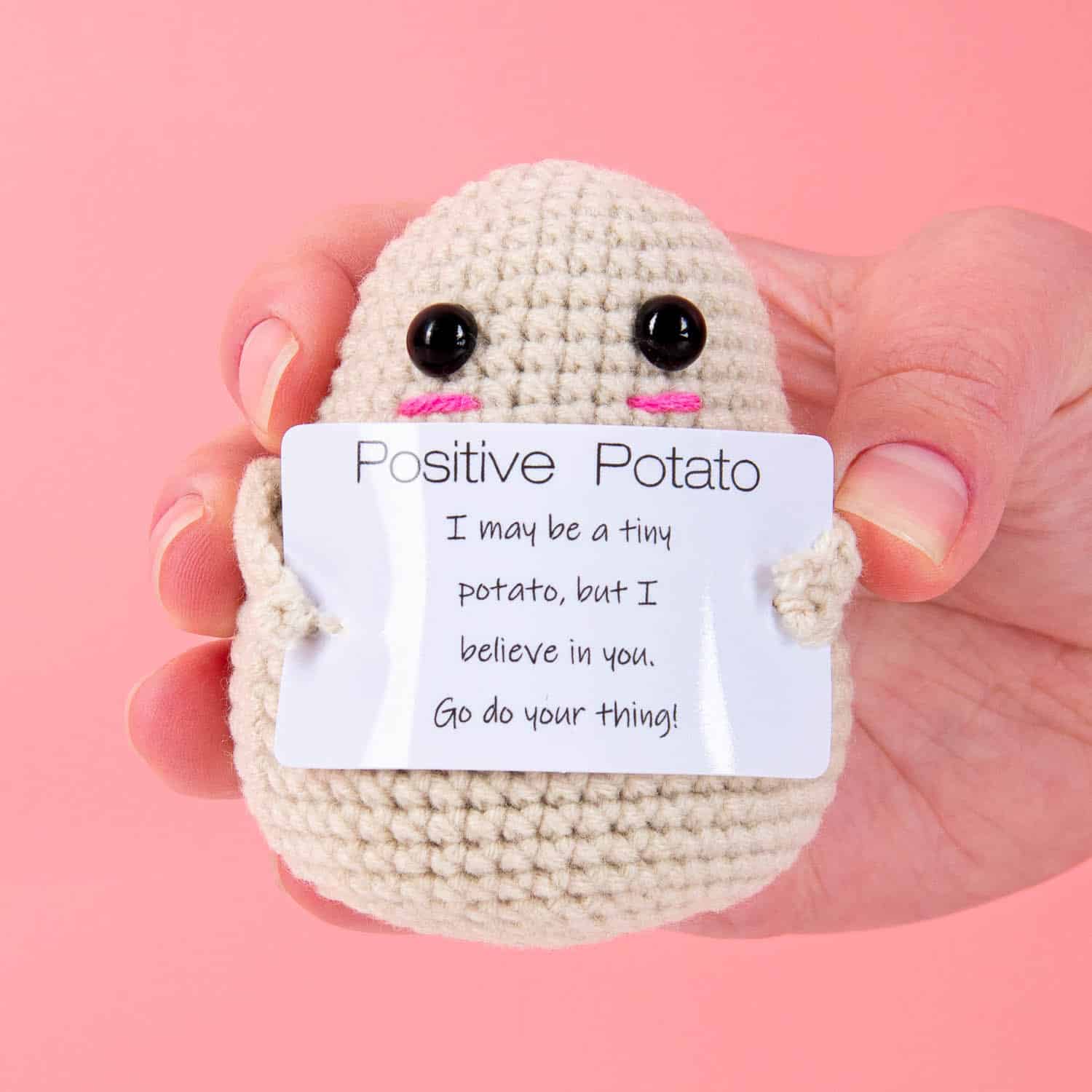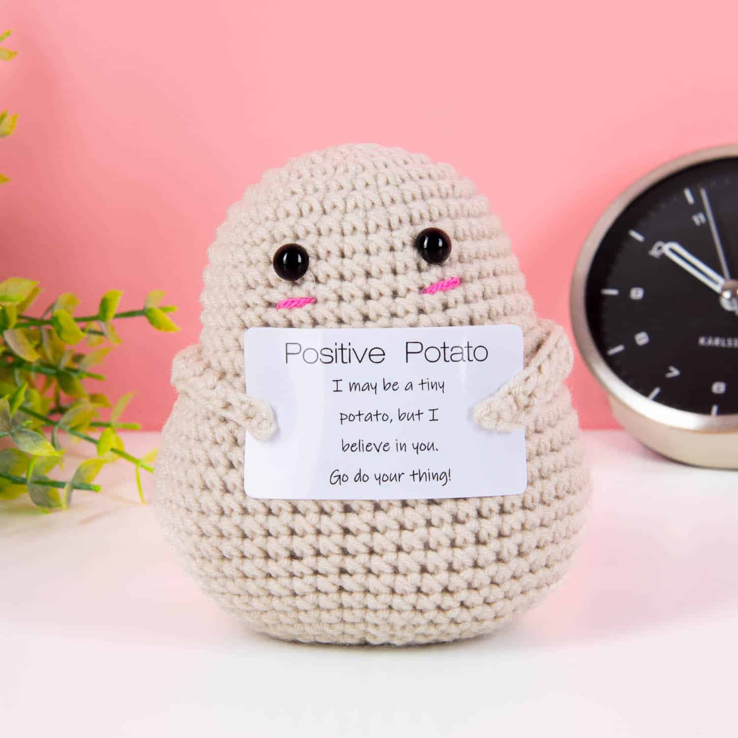 • Mit der Aufschrift: I may be a tiny potato, but I believe in you. Go do your thing!
