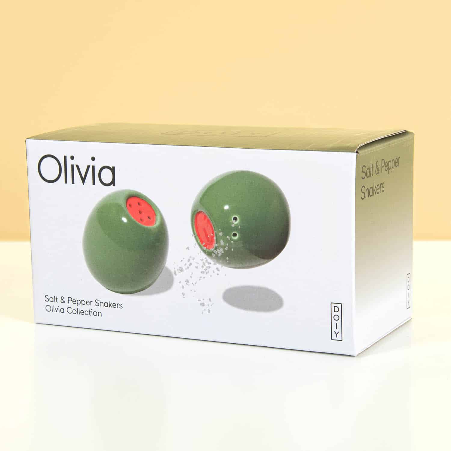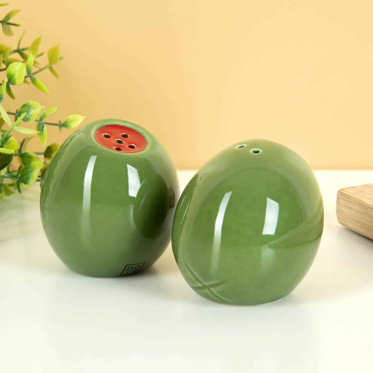 Liebst du Oliven? Dann wirst du dieses witzige Set lieben! Das Oliven Salz- und Pfefferstreuer-Set von DOIY sieht aus wie zwei รผberdimensionale grรผne Oliven โ perfekt, um einen besonderen Platz auf deiner Kรผchenarbeitsplatte einzunehmen. Zu schรถn, um sie im Schrank zu verstecken! Ideal fรผr alle, die mit einem Augenzwinkern wรผrzen mรถchten.