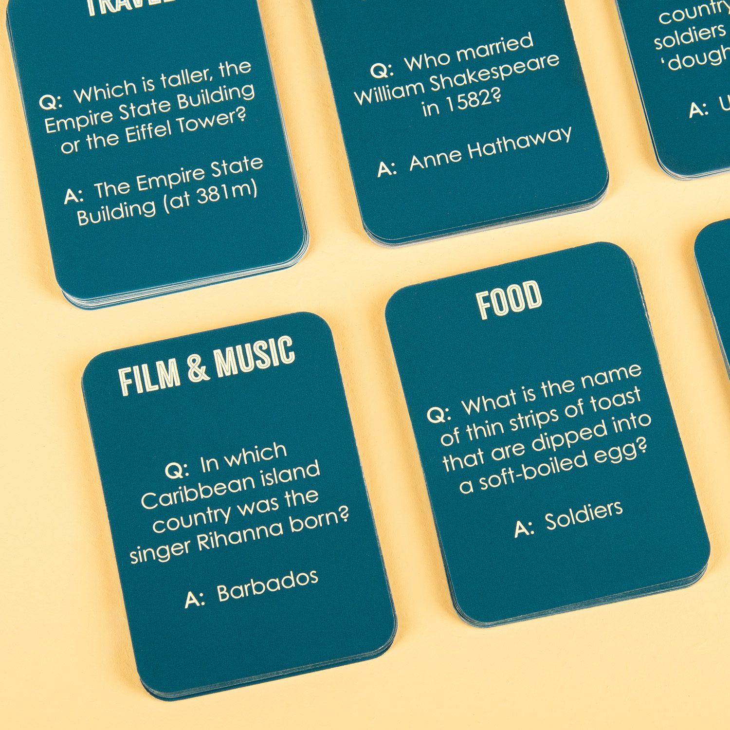 Kompaktes Trivia-Spiel fรผr den Urlaub von Talking Tables
