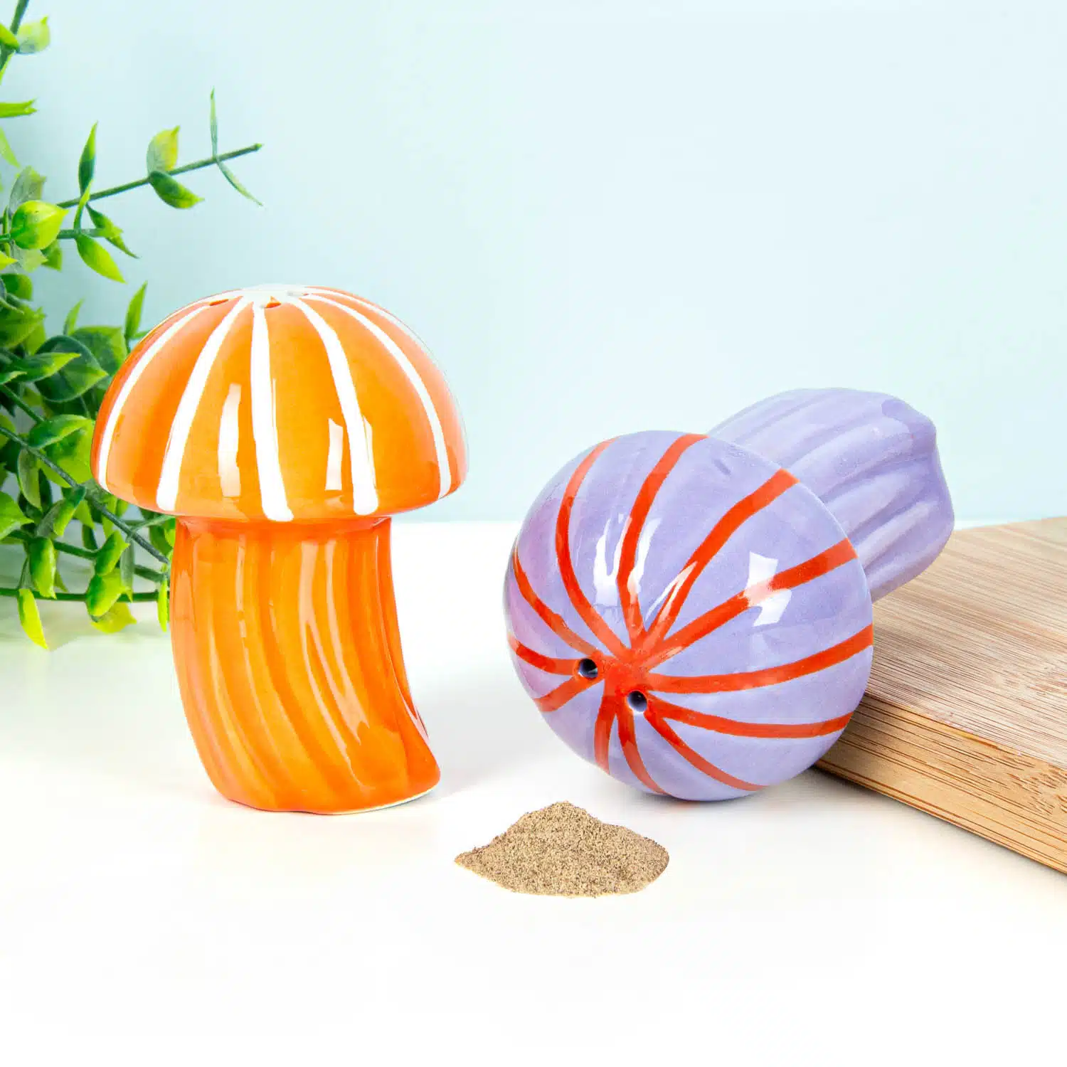 Sie bewegen sich geheimnisvoll und elegant durch den Ozean – und sind perfekt für alle, die das Meer lieben: die Quallen Salz- und Pfefferstreuer von DOIY. Mit diesem hübschen Set holst du dir ein Stück Meer nach Hause. Die orangefarbene und die lilafarbene Qualle lassen sich leicht mit Salz und Pfeffer befüllen und sorgen dafür, dass dein Essen immer gut gewürzt ist. Und in einem Küchenschrank möchten sie lieber nicht verschwinden – diese Quallen sind echte Hingucker!