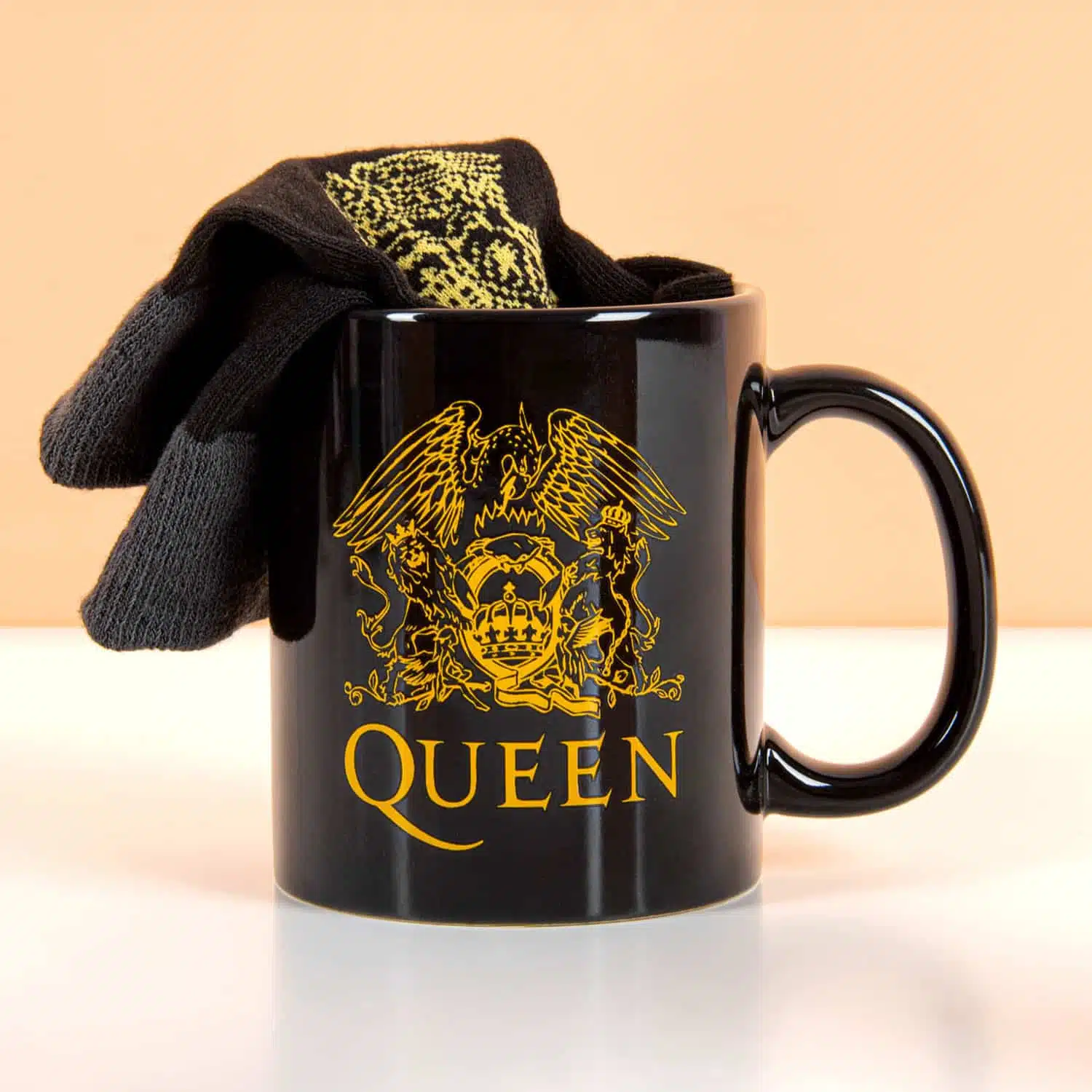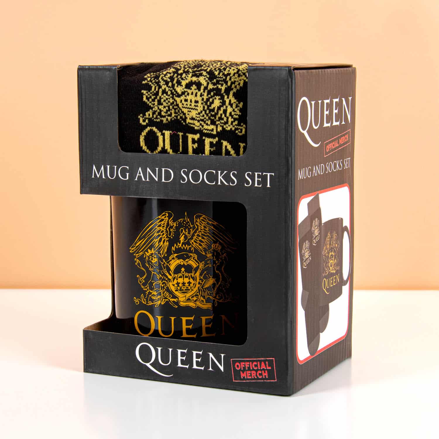 Bist du Fan von Freddie Mercury und seiner Band? Dann ist dieses Queen Geschenkset ein echtes Must-have. Das Set besteht aus einer Tasse und Socken mit dem ikonischen Queen-Logo.