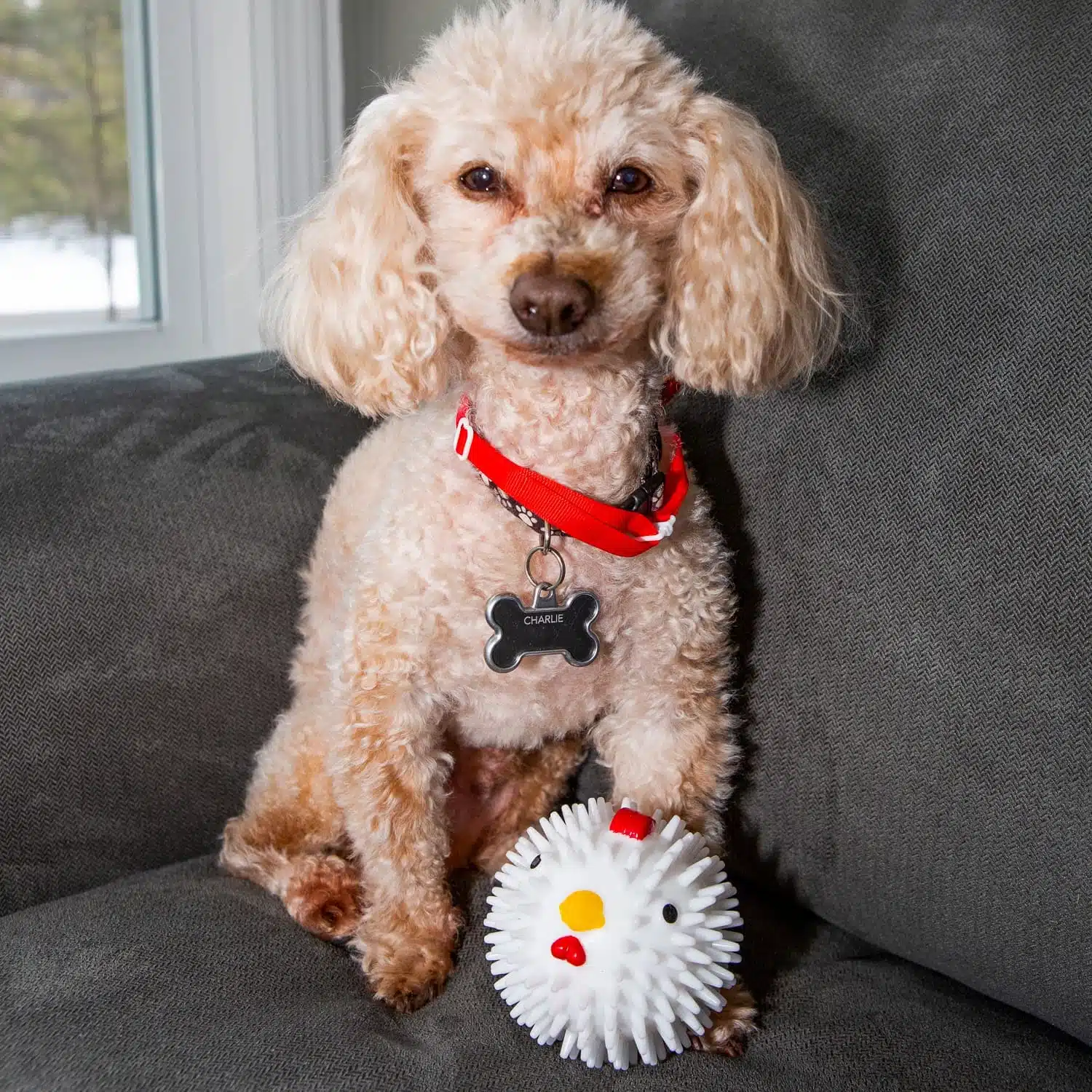 Aller Unsinn beiseite: Wenn du ein Hundespielzeug findest, das nach Huhn oder Rind riecht, dann muss dein treuer Vierbeiner das einfach haben, oder? Der Quietschball für Hunde mit Geruch von Kikkerland ist genau das. Dieses einzigartige Quietschbällchen sieht nicht nur (ein wenig) wie ein Huhn oder eine Kuh aus, es hat auch diesen Geruch. Wetten, dass es das Lieblingsspielzeug deines besten Freundes wird? Verwöhne deinen Hund damit am Welttierschutztag oder einfach so, denn eigentlich ist jeder Tag ein Tiertag.