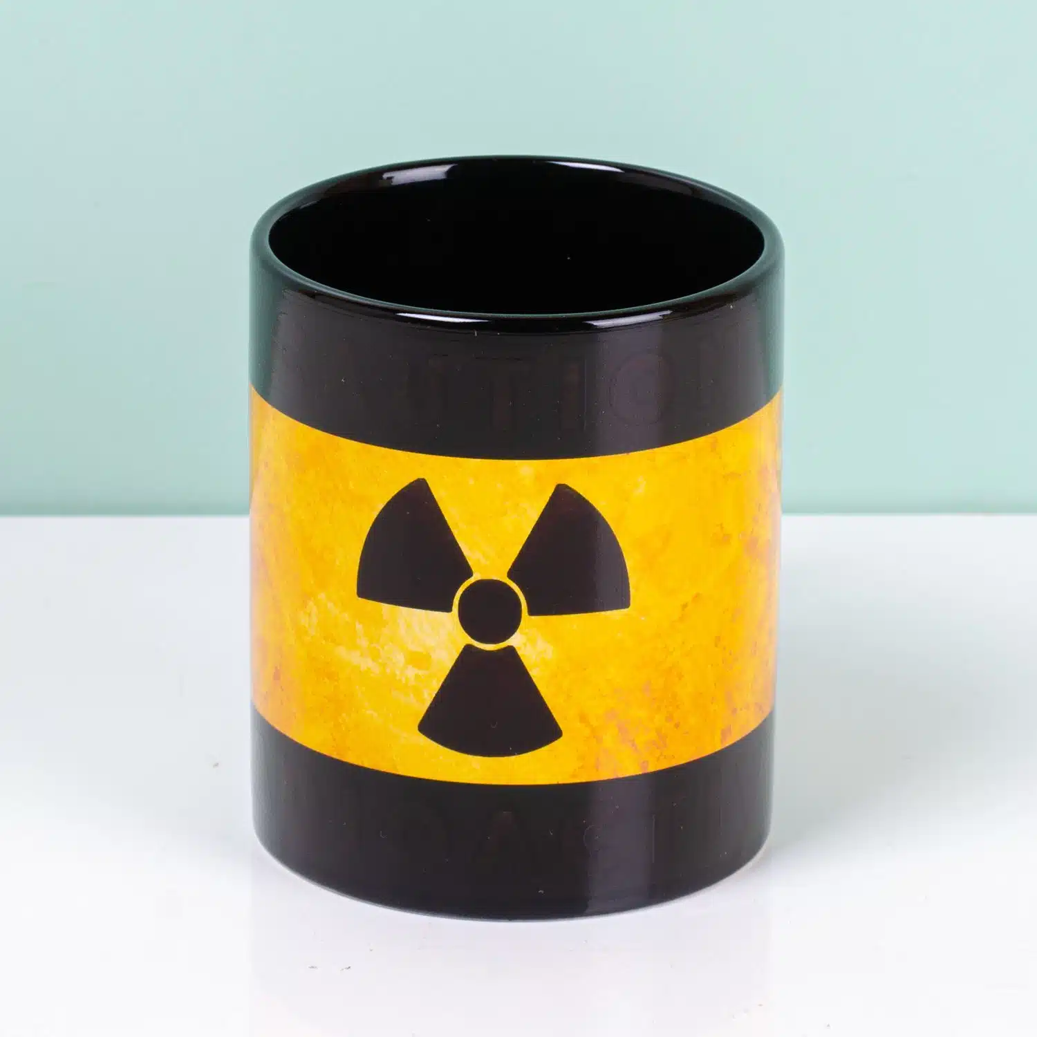 - Tasse mit Warnzeichen für Radioaktivität