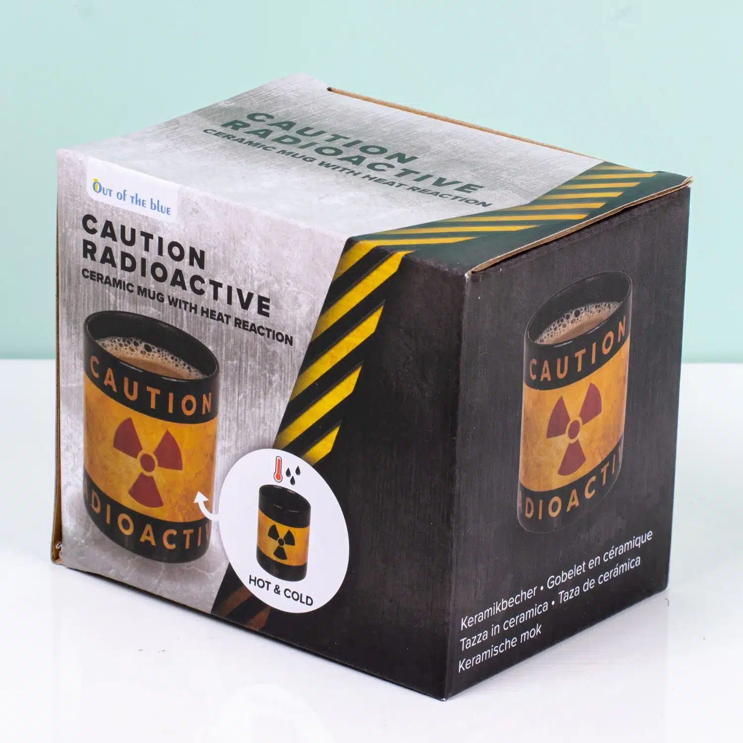 Kollegen, die über deine Schulter auf den Bildschirm schauen, oder knuddelige Mitbewohner: Du jagst sie alle mit der Radioaktive wärmeempfindlichen Tasse weg. Auf dieser Tasse steht es deutlich: Bleib in sicherer Entfernung, denn deine Tasse ist radioaktiv. Die Worte „Caution“ und „Radioactive“ stehen auf der Tasse, und das Warnzeichen für Radioaktivität wechselt von Schwarz zu Rot, wenn du ein heißes Getränk hinein gießt.