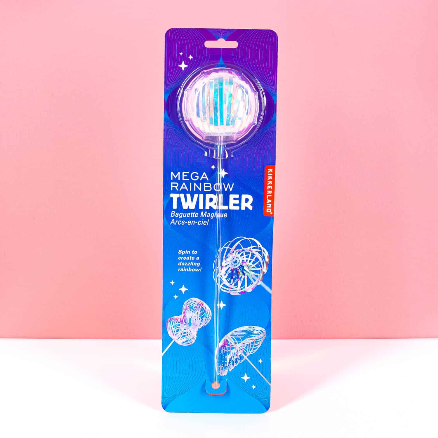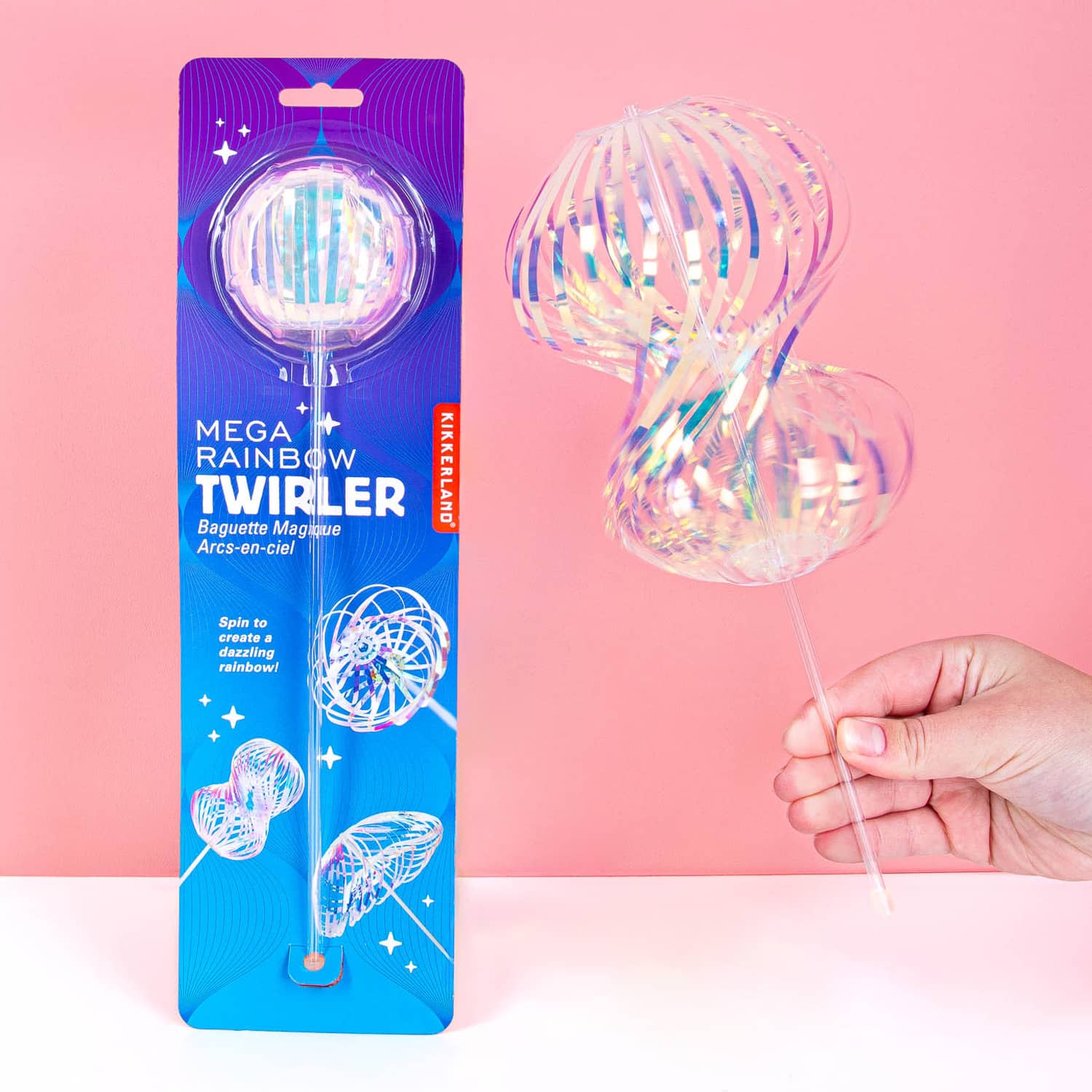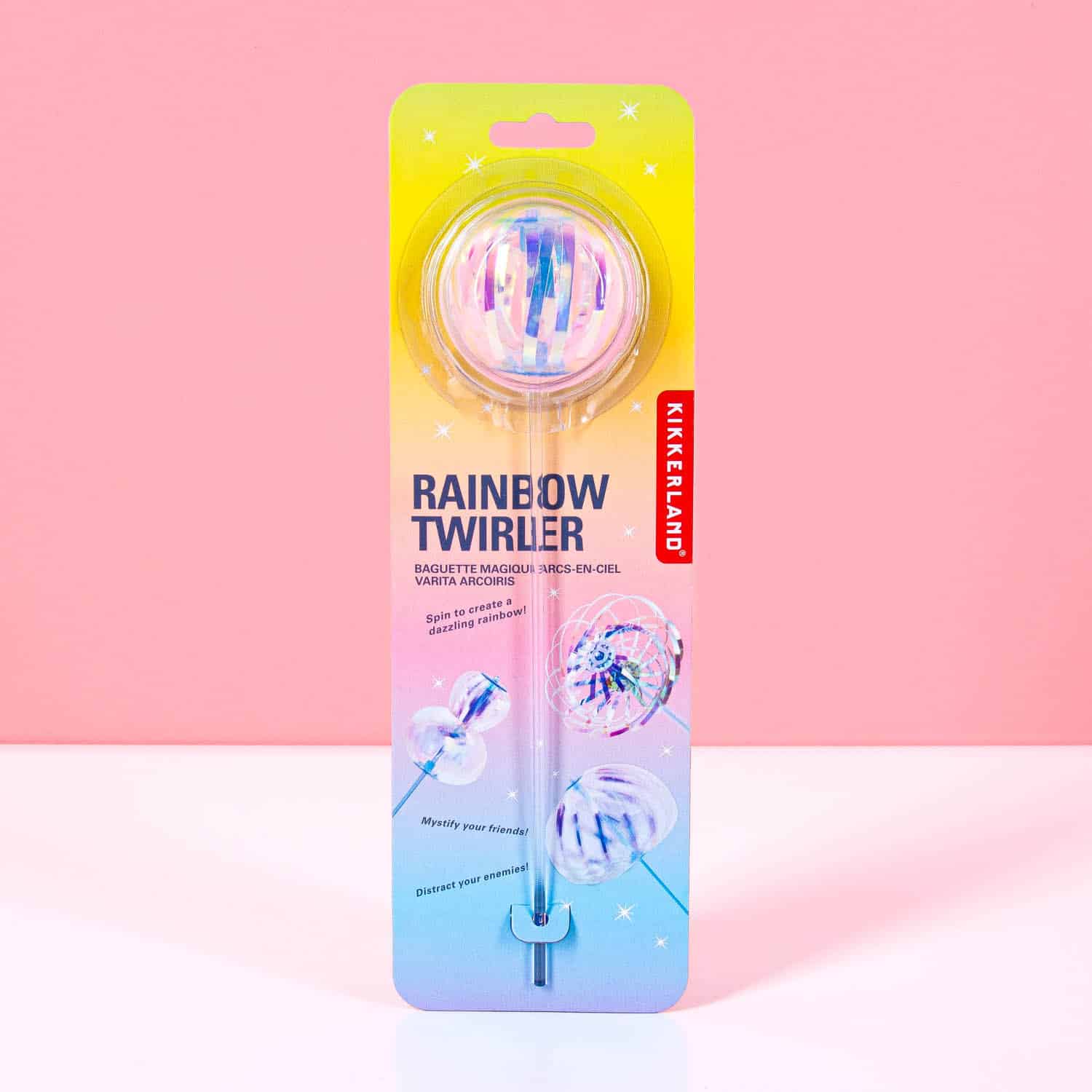Ist es ein Regenbogen? Ist es eine Seifenblase? Nein, das ist es nicht: Es ist der Regenbogen-Spinner von Kikkerland! Wir verstehen die Verwirrung, denn auch wir sind immer noch beeindruckt von diesem besonderen Spielzeug. Der Regenbogen-Spinner ist ein Stab mit dünnen Bändern, die einen holografischen Effekt erzeugen. Wenn man den Stab dreht, formen die Bänder eine Art Seifenblase mit Regenbogenfarben. Da sich verschiedene Figuren erzeugen lassen, eignet er sich perfekt als kleine Beschäftigungstherapie – zum Beispiel für Kinder auf einer langweiligen Familienfeier. Und das Beste: Sie haben gleich ein Publikum, das sie leicht hinters Licht führen können.