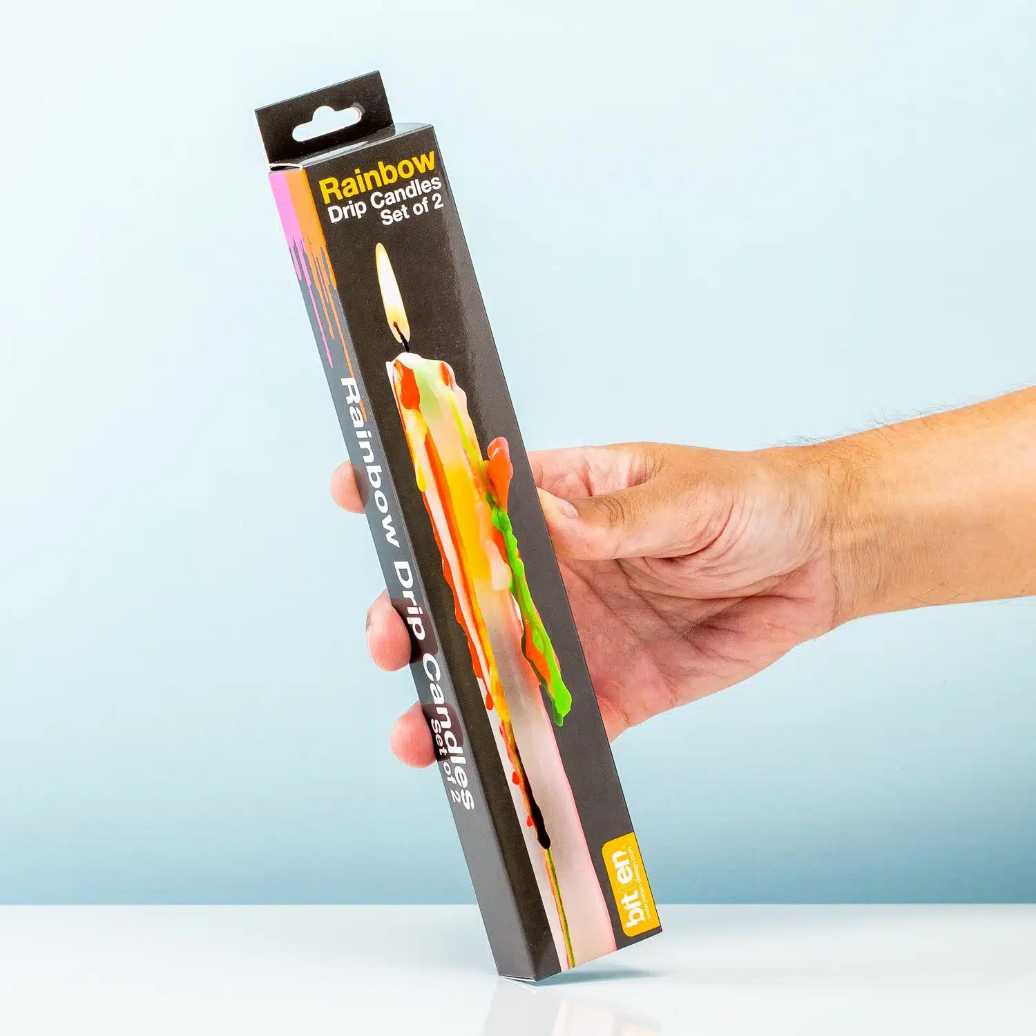 Hand in Hand! Auge in Auge! Alle Farben des Regenbogens! Insgeheim liebst du Regenbogen genau wie K3. Sie machen das Leben einfach weniger grau. Und wer weiß, vielleicht findest du ja eines Tages den Topf voll Gold. Da es sehr schade ist, dass der Regenbogen in den Niederlanden nicht so oft zu sehen ist, haben wir diese Regenbogen-Tropfkerze von Bitten in unser Sortiment aufgenommen. Dies ist ein Set aus 2 bunten Kerzen. Stelle diese Kerzen an einen schönen, prominenten Ort im Wohnzimmer, zünde sie an und sieh zu, wie das Kerzenwachs in allen Farben des Regenbogens heruntertropft. Als ob du ein Einhorn verbrennst!
