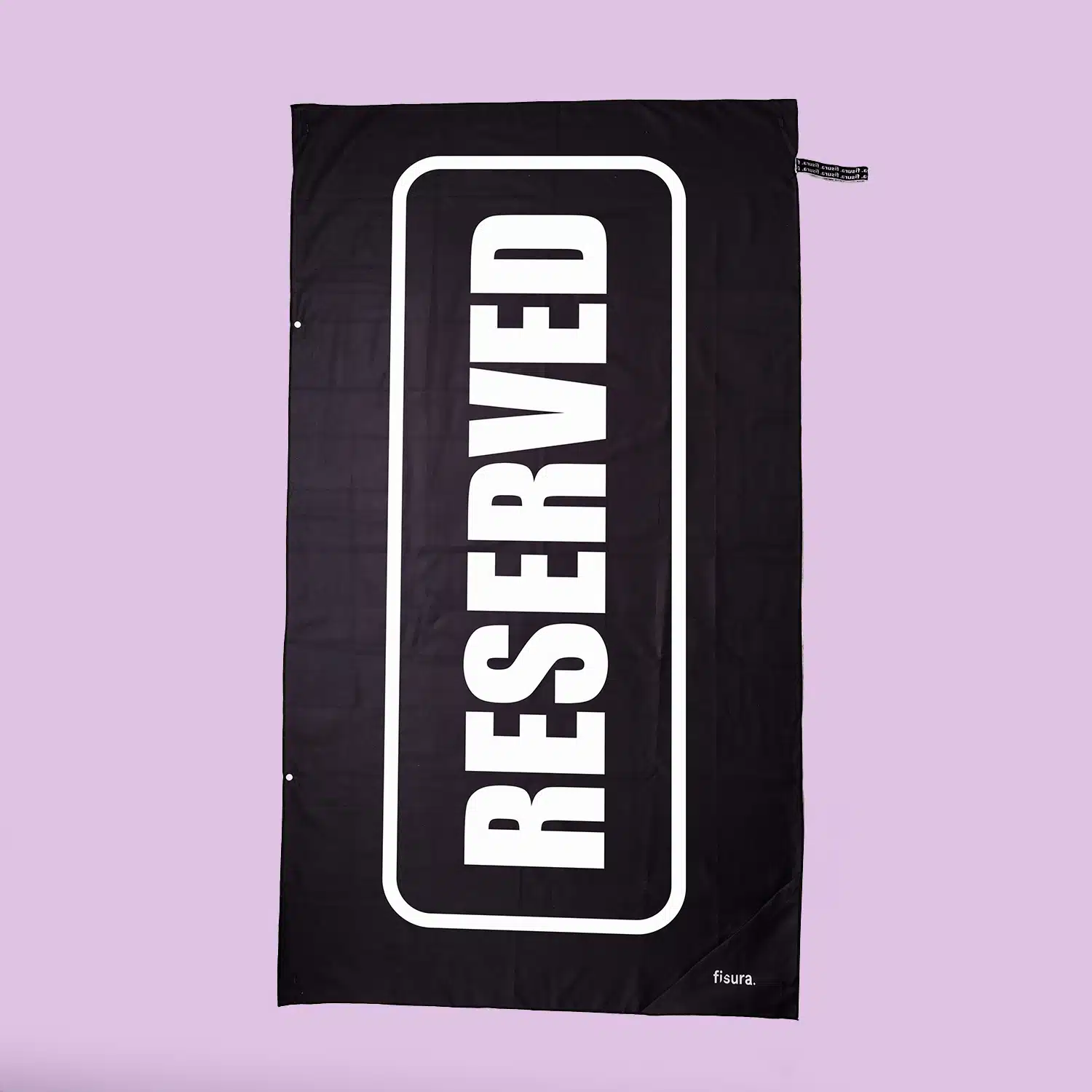- Auffälliges Strandtuch mit dem Text: Reserved