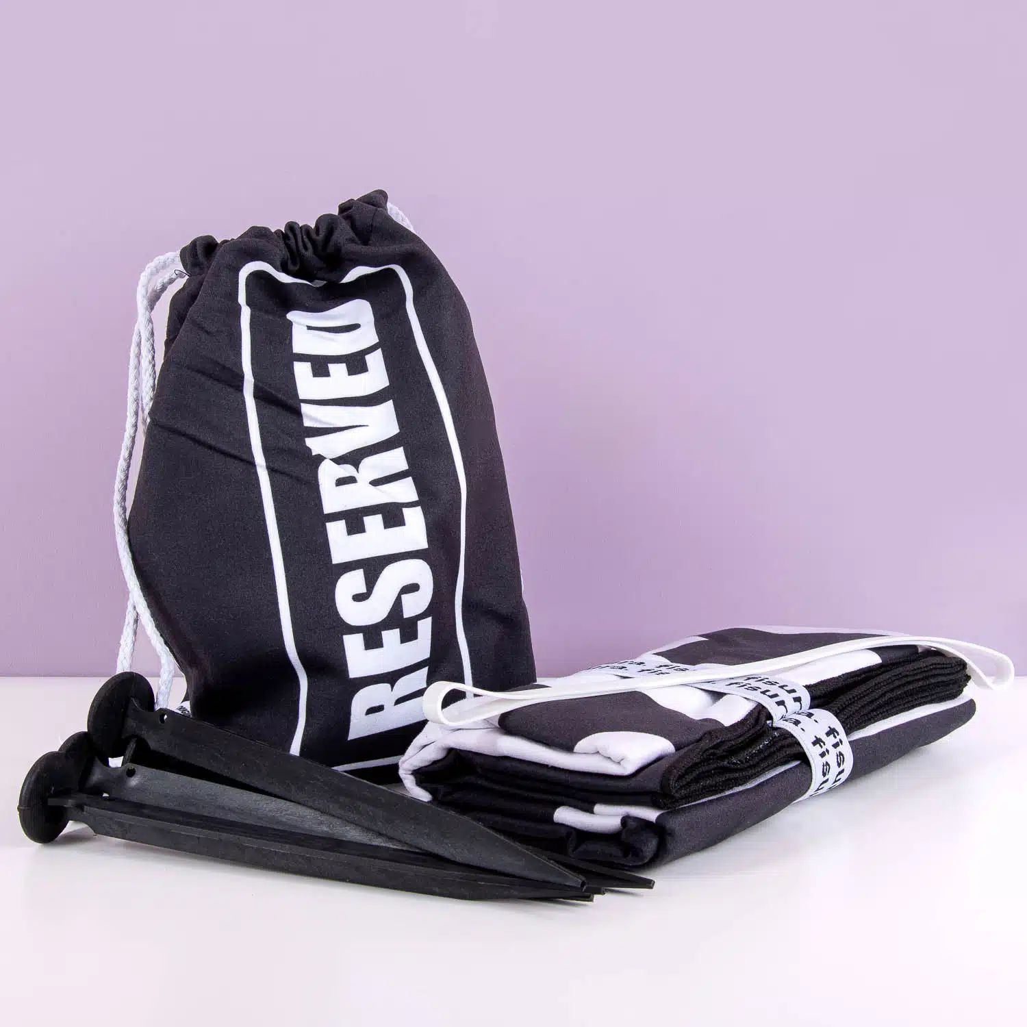 Bist du morgens sofort startklar, um dein Handtuch auf eine Sonnenliege zu werfen? Dann ist das Reserved Strandtuch von Fisura genau das Richtige für dich! Dieses witzige schwarze Badetuch macht unmissverständlich klar, wem das Strandbett gehört – der große Schriftzug “RESERVED” lässt keinen Zweifel. Aber das Strandtuch ist nicht nur zum Reservieren praktisch: Es verfügt auch über eine Reißverschlusstasche, vier Heringe und ein praktisches Silikonband zum einfachen Transport.