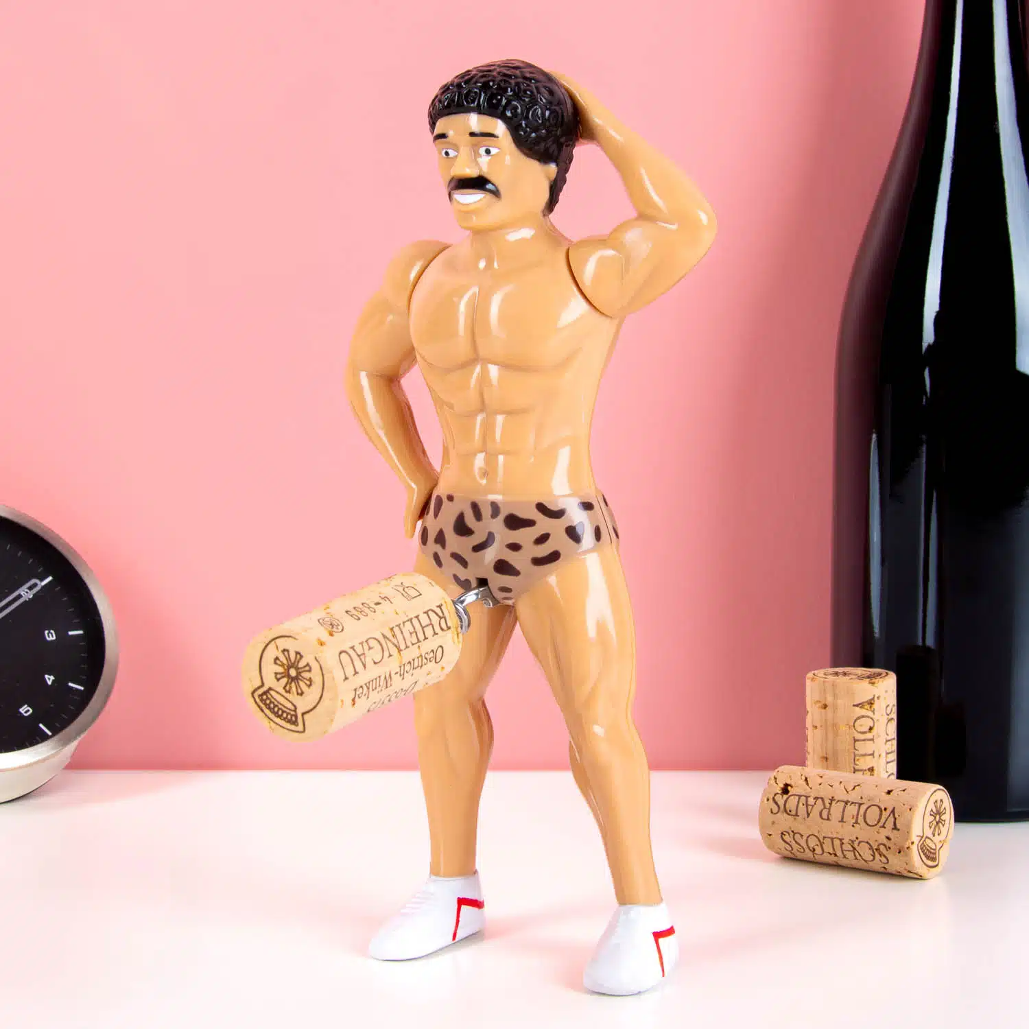 Ist es sein Schnurrbart, die Lockenmähne oder die enge Shorts? Der Retro-Mann Korkenzieher sieht aus, als käme er direkt aus einem Bodybuilding-Wettbewerb der 80er. Dieses witzige Gadget ist das ideale Geschenk für alle Weinliebhaber mit Sinn für Humor.