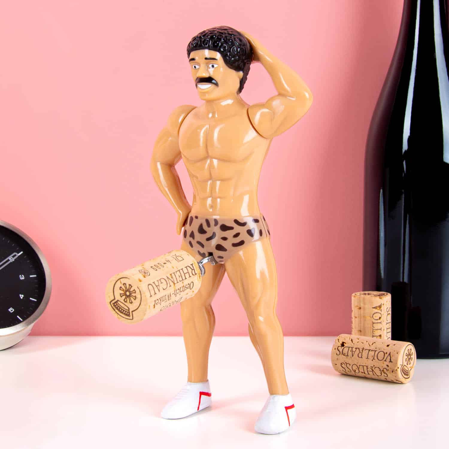Ist es sein Schnurrbart, die Lockenmรคhne oder die enge Shorts? Der Retro-Mann Korkenzieher sieht aus, als kรคme er direkt aus einem Bodybuilding-Wettbewerb der 80er. Dieses witzige Gadget ist das ideale Geschenk fรผr alle Weinliebhaber mit Sinn fรผr Humor.