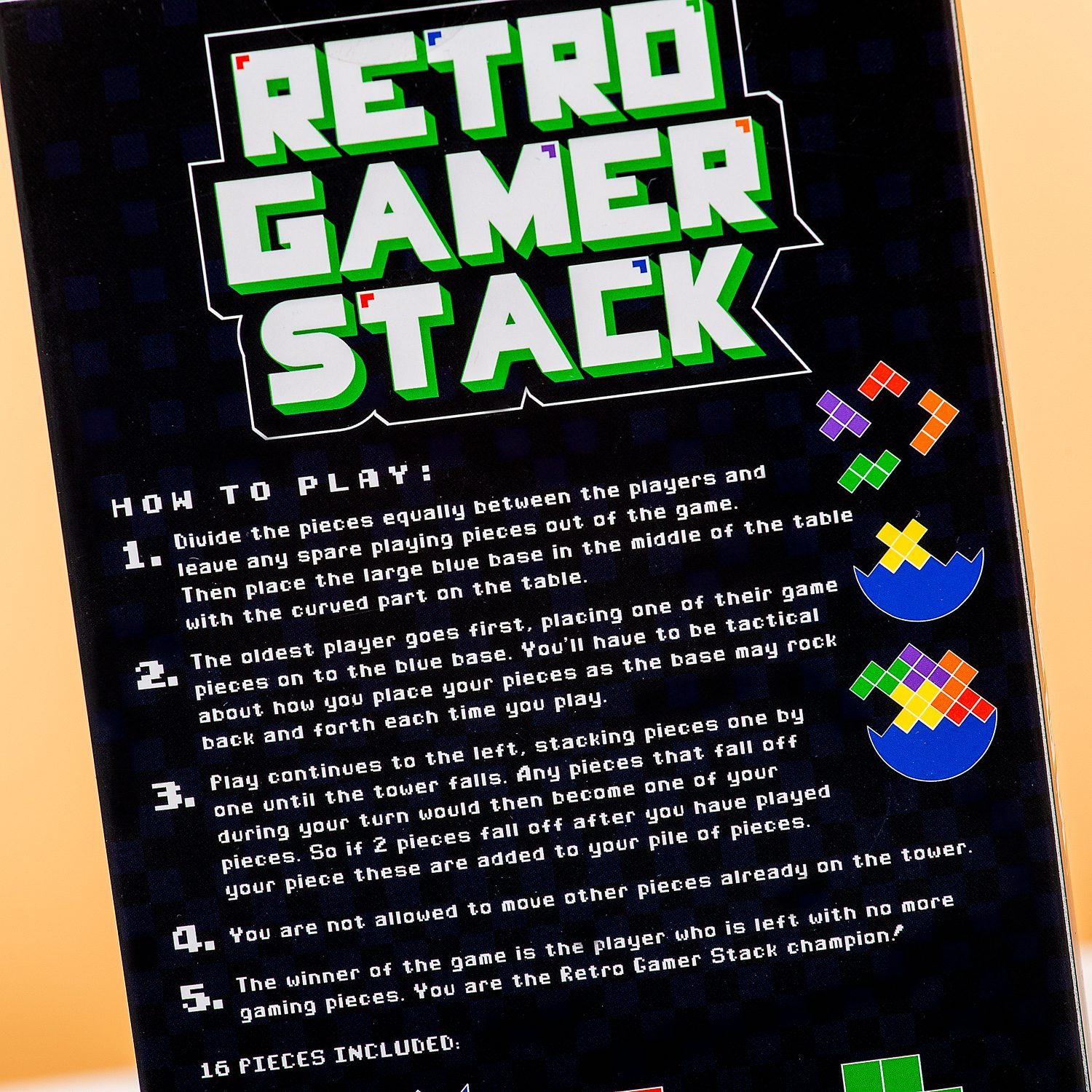 Wenden Sie den Blick vom Bildschirm ab und spielen Sie ein Spiel offline. Zum Beispiel das Retro Game Stapelspiel von Gift Republic. Dieses Spiel wird jeden alten Spieler glรผcklich machen: Die Spielfiguren รคhneln den Figuren von Tetris.Ziel ist es, mรถglichst viele Teile auf dem Sockel zu stapeln: Wer den Turm fallen lรคsst, verliert.