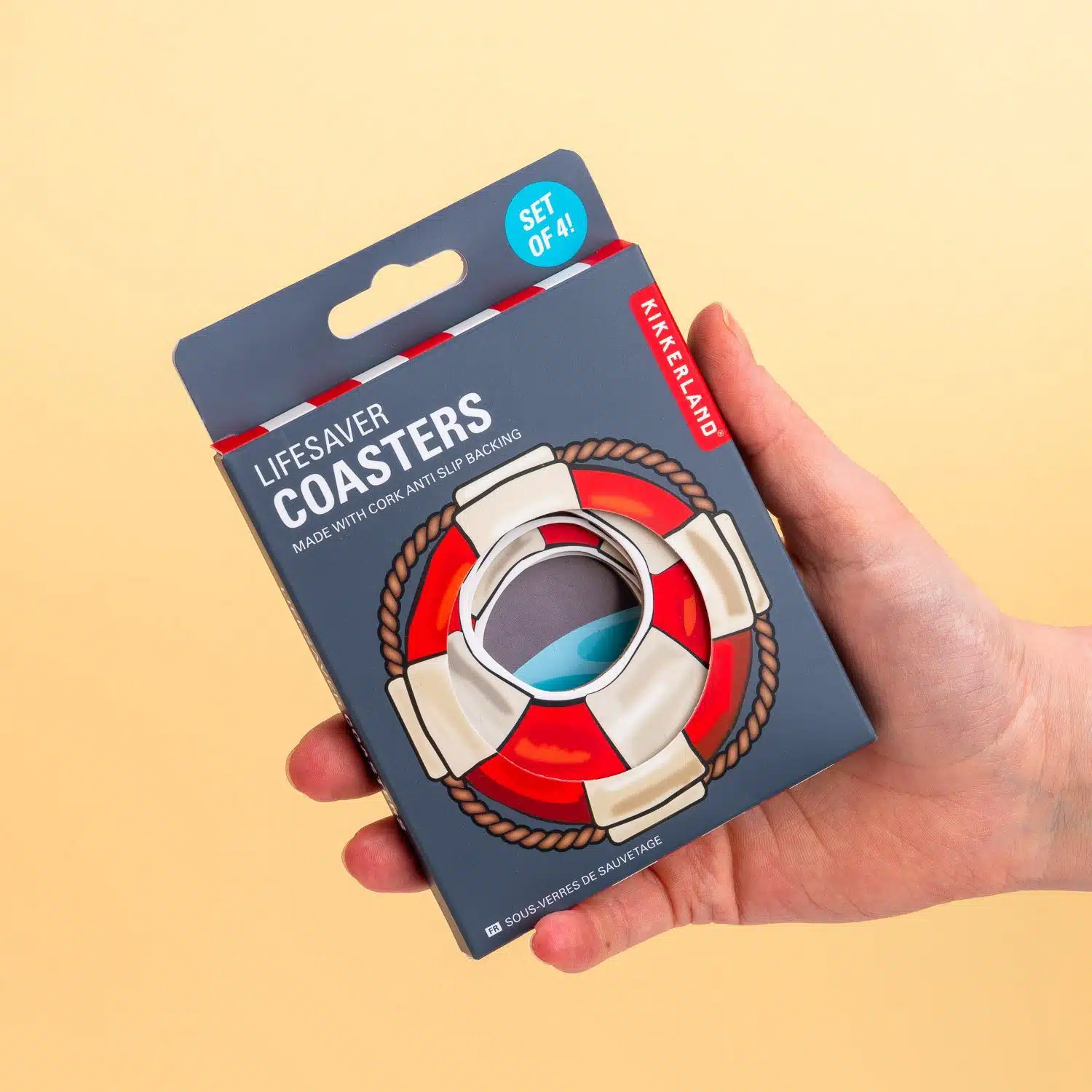 Mit den Rettungsring-Untersetzern (Set von 4) von Kikkerland kannst du dein Getränk auf sichere Weise genießen. Diese originellen Untersetzer sehen aus wie ein Rettungsring. Also selbst wenn mal etwas schiefgeht und jemand über Bord geht, kannst du ihm einen Rettungsring zuwerfen. Die Untersetzer sind perfekt für dein Strandhaus, aber natürlich auch toll für deine Wohnung, falls ein Strandhaus etwas zu ambitioniert ist.