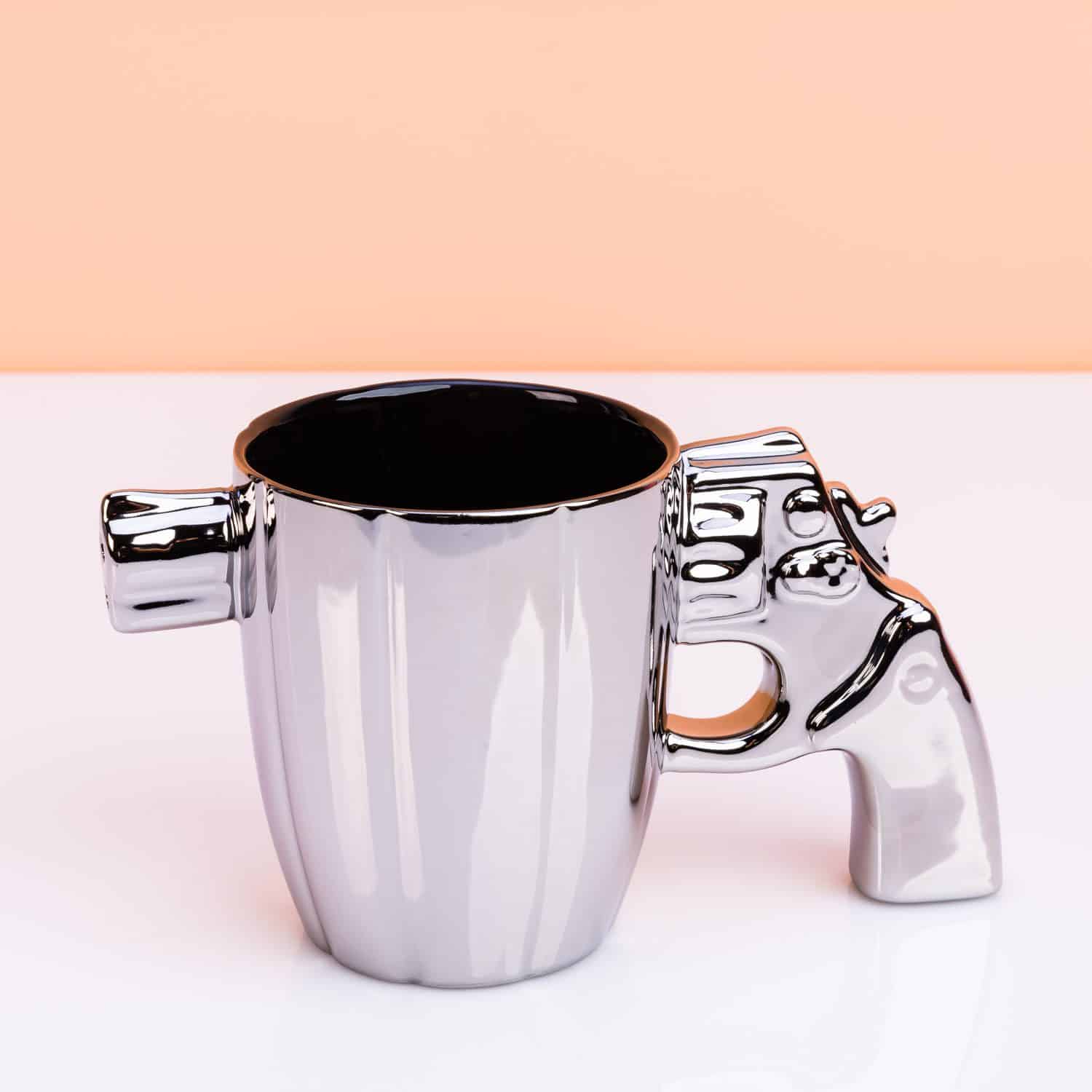 Bist du ein Fan von True Crime und allem, was damit zusammenhรคngt? Dann haben wir einen lustigen Becher fรผr dich. Die Revolver Mok ist eine Kaffeetasse, die nicht einfach einen normalen Henkel hat, sondern den Griff eines Revolvers. Auf der anderen Seite des Bechers ist ein Teil des Revolverlaufs zu sehen.