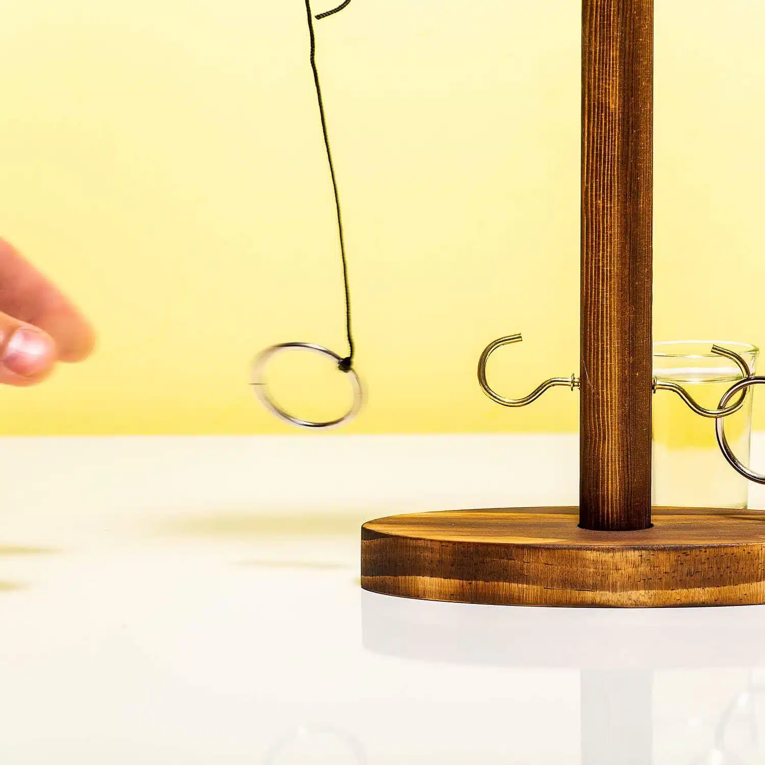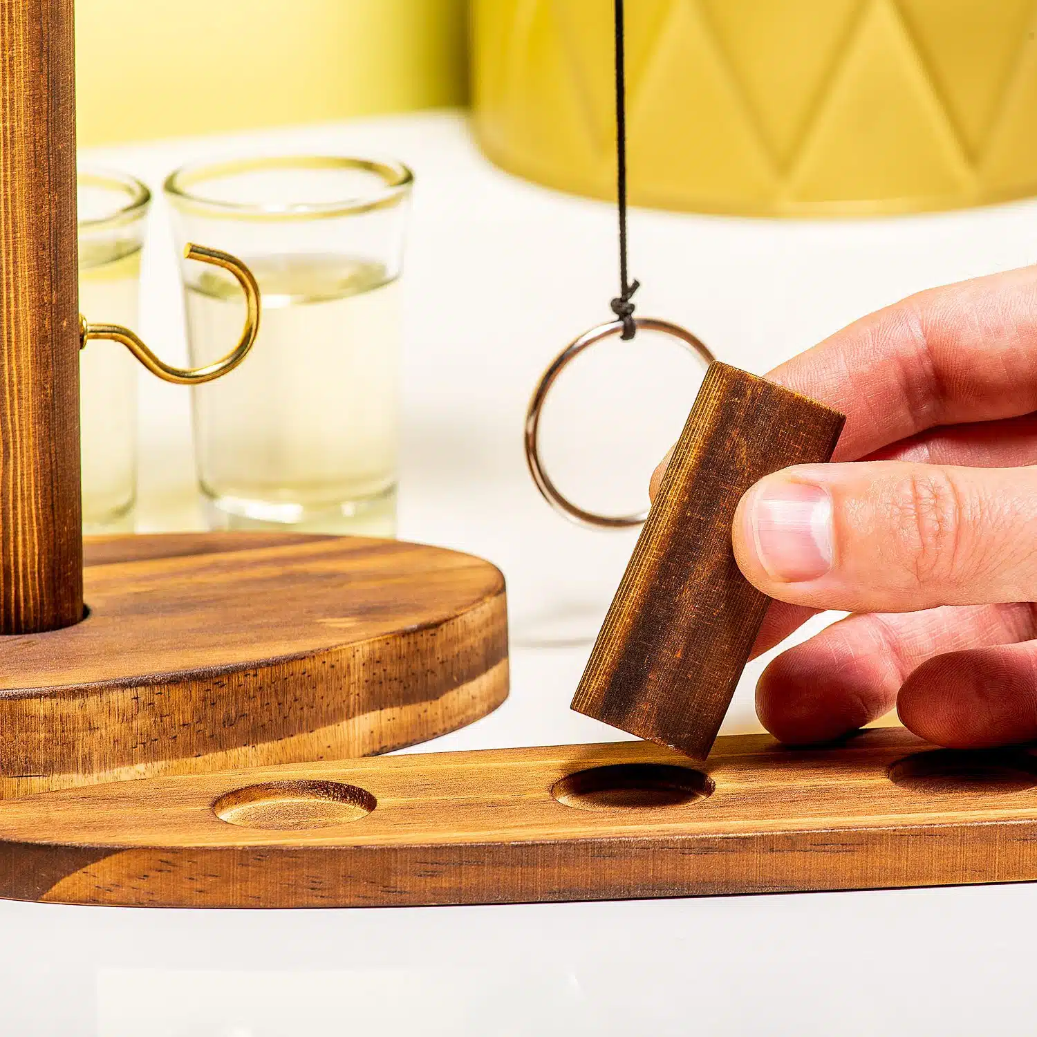 - Holz Trinkspiel, bei dem man den Ring an den Haken werfen muss.