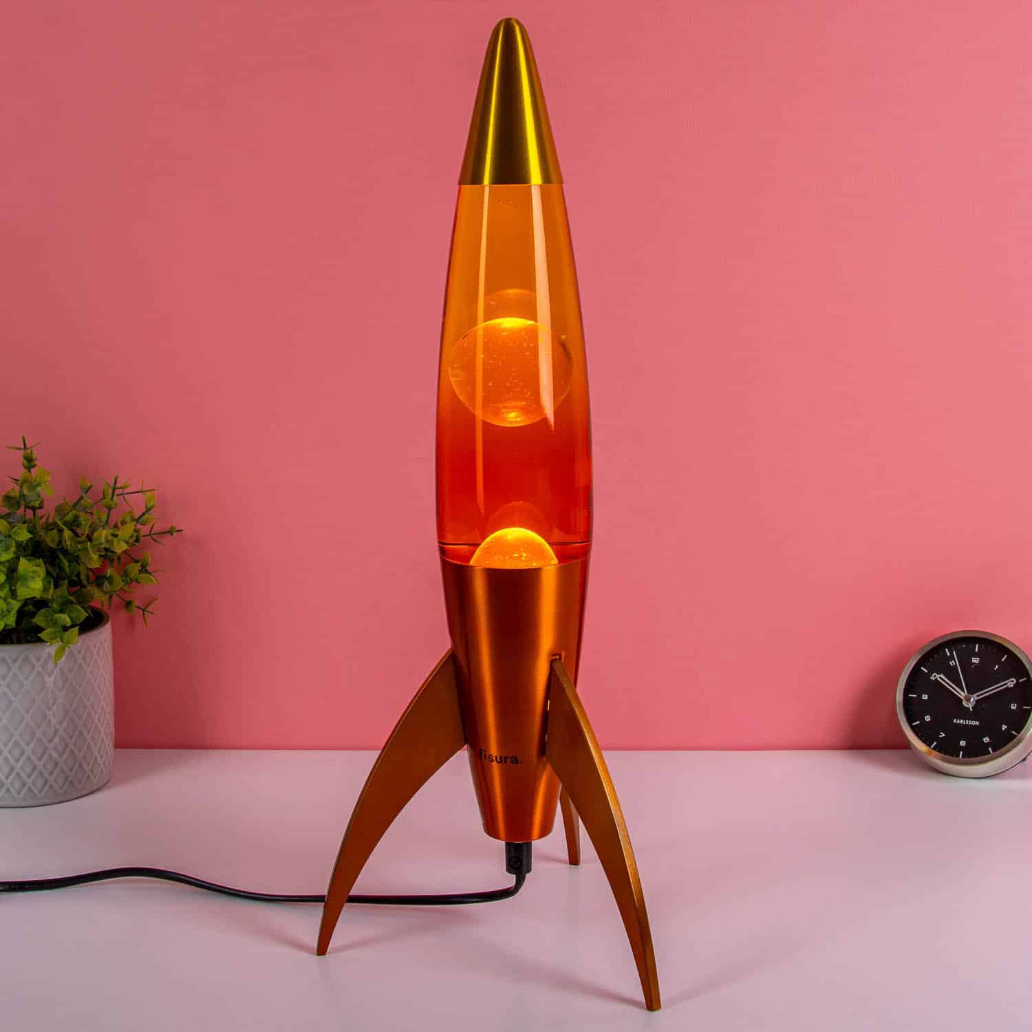 Lavalampe in Raketenform in Orange und Gelb von Fisura